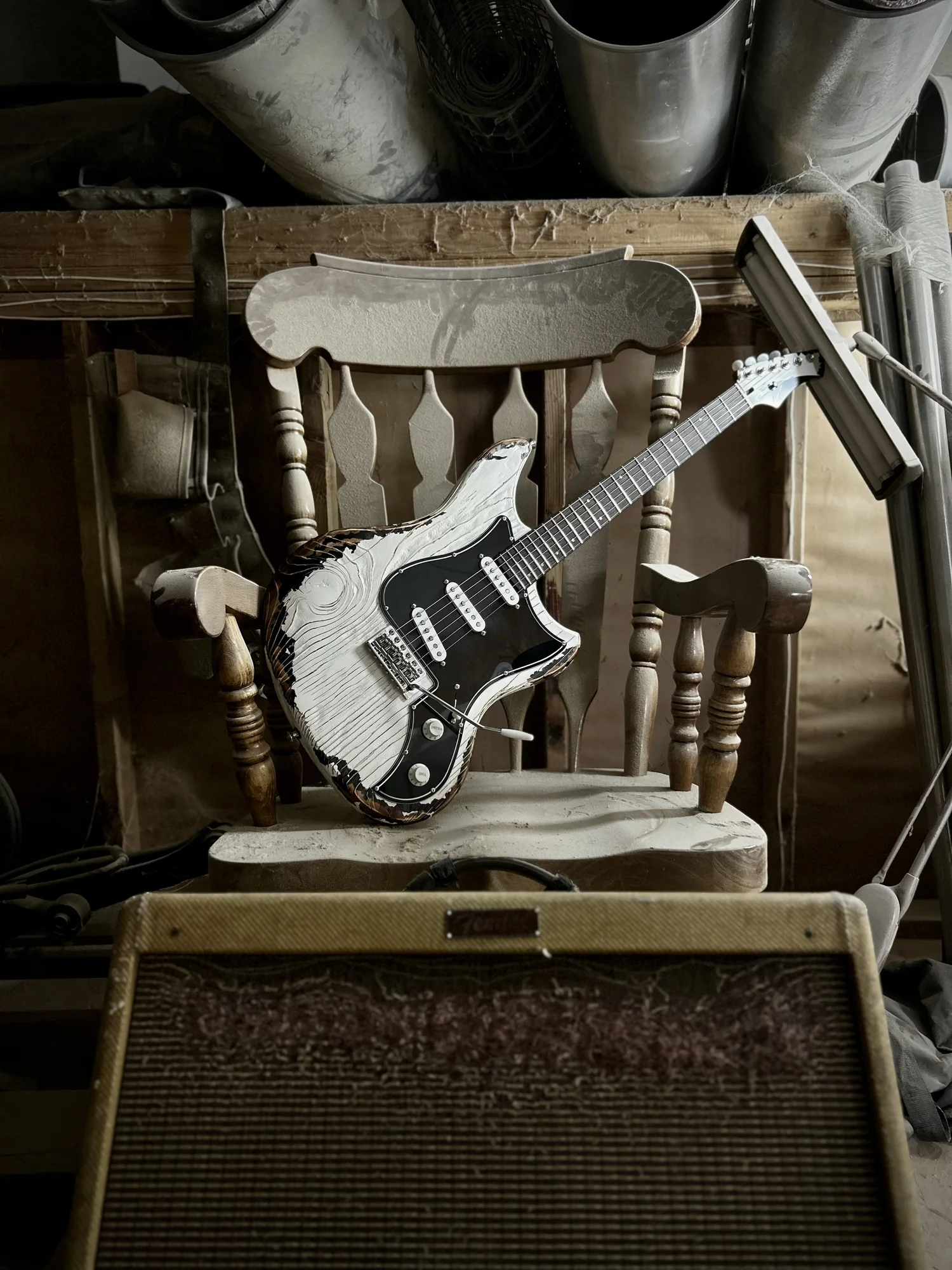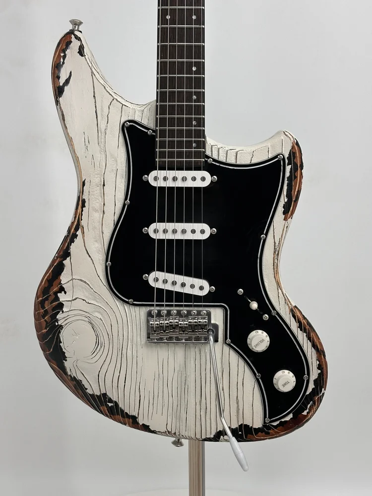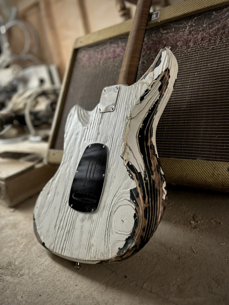 E' il Pino Californiano risalente a piantagioni dei primi del 900 del secolo scorso, custodito e fatto invecchiare, a trasformarsi nel body della Kauer Electroliner, il quale opta per la finitura Wheathered White, ampiamente scrostata (bianca sopra a uno strato nero), che mette a nudo le venature e i nodi di questo legno antico.