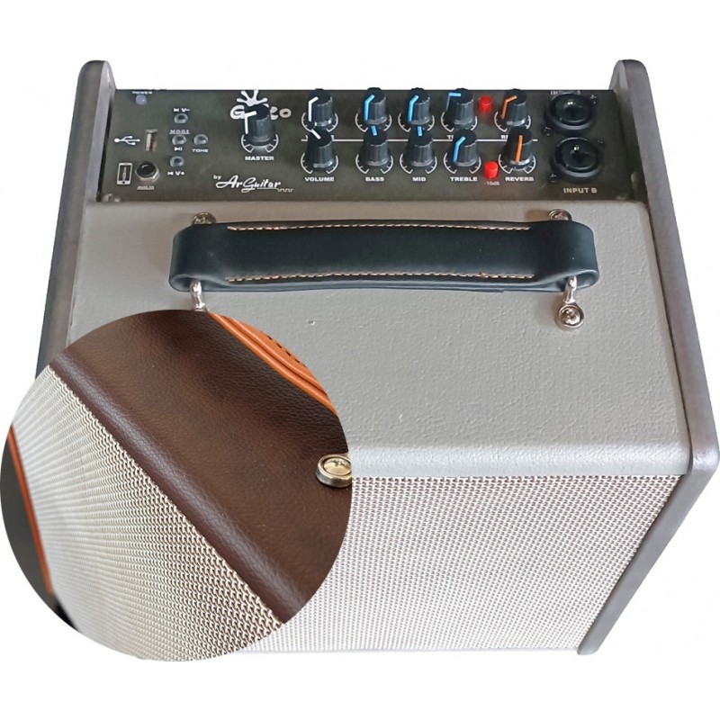 Ma non è tutto ed infatti, rivelando la sua indole di amplificatore affidabile e moderno, Geko Amp mette in campo una serie di connessioni smart: ingresso Aux In (jack mm 3, 5) per il collegamento di una sorgente esterna (MP3 o altro device), connessione USB/Bluetooth impiegabile come lettore di musica da pendrive o per registrare quel che si suona con la chitarra. La presa per la diretta D.I. Out e la presa cuffie completano il comparto tecnico del nuovo Geko Amp.