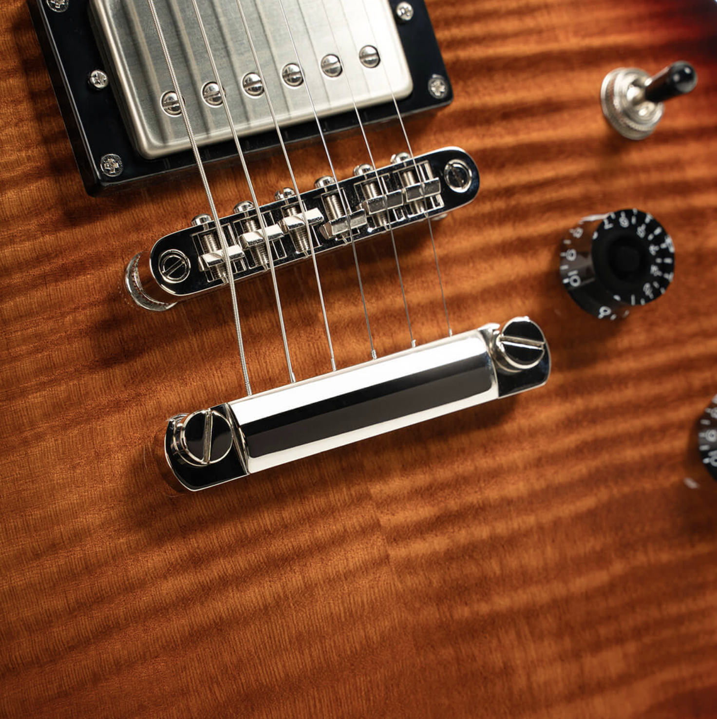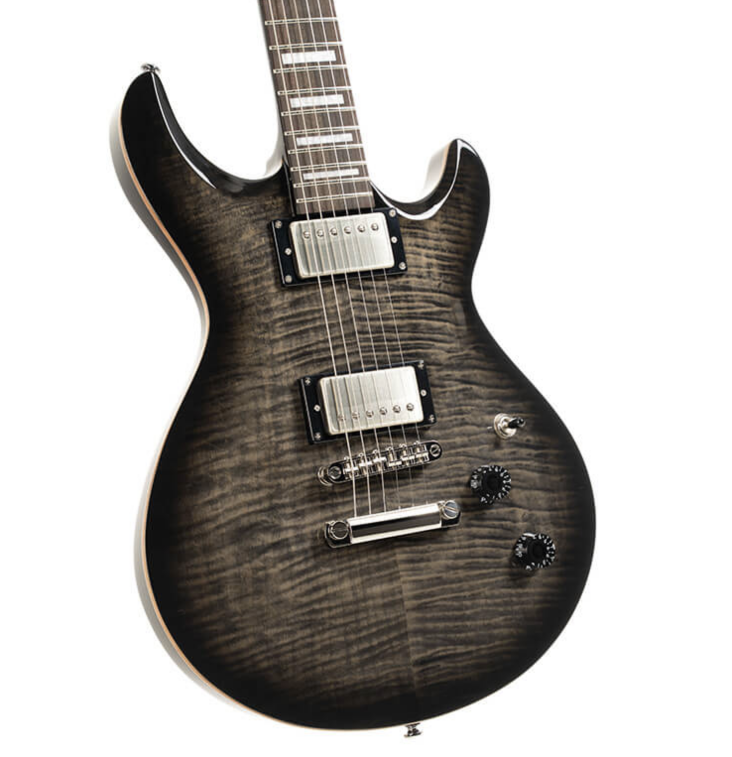 Costruzione: Set-neck – Shape: Double Cut – Body: Mahogany – Top: Flamed Maple – Manico: Mahogany – Profilo manico: C-shape – Trussrod: doppia regolazione – Scala: 24,75” (mm 628) – Tastiera: Rosewood – Radius: 12” – Tasti: 22 – Segnatasti: White Pearl Block – Capotasto: GraphTech Black Tusq, ampiezza mm 43 – Meccaniche: autobloccanti – Ponte: Tune-o-matic con stop tail – Humbucker: 2x Voiced Tone VTH59 (manico/ponte) – Switch: 3 posizioni – Controlli: Volume, Tone – Corde: D’Addario EXL110 (010-046) – Hardware: Nickel – Finiture: Blue Burst, Trans Black Burst, Tobacco Burst