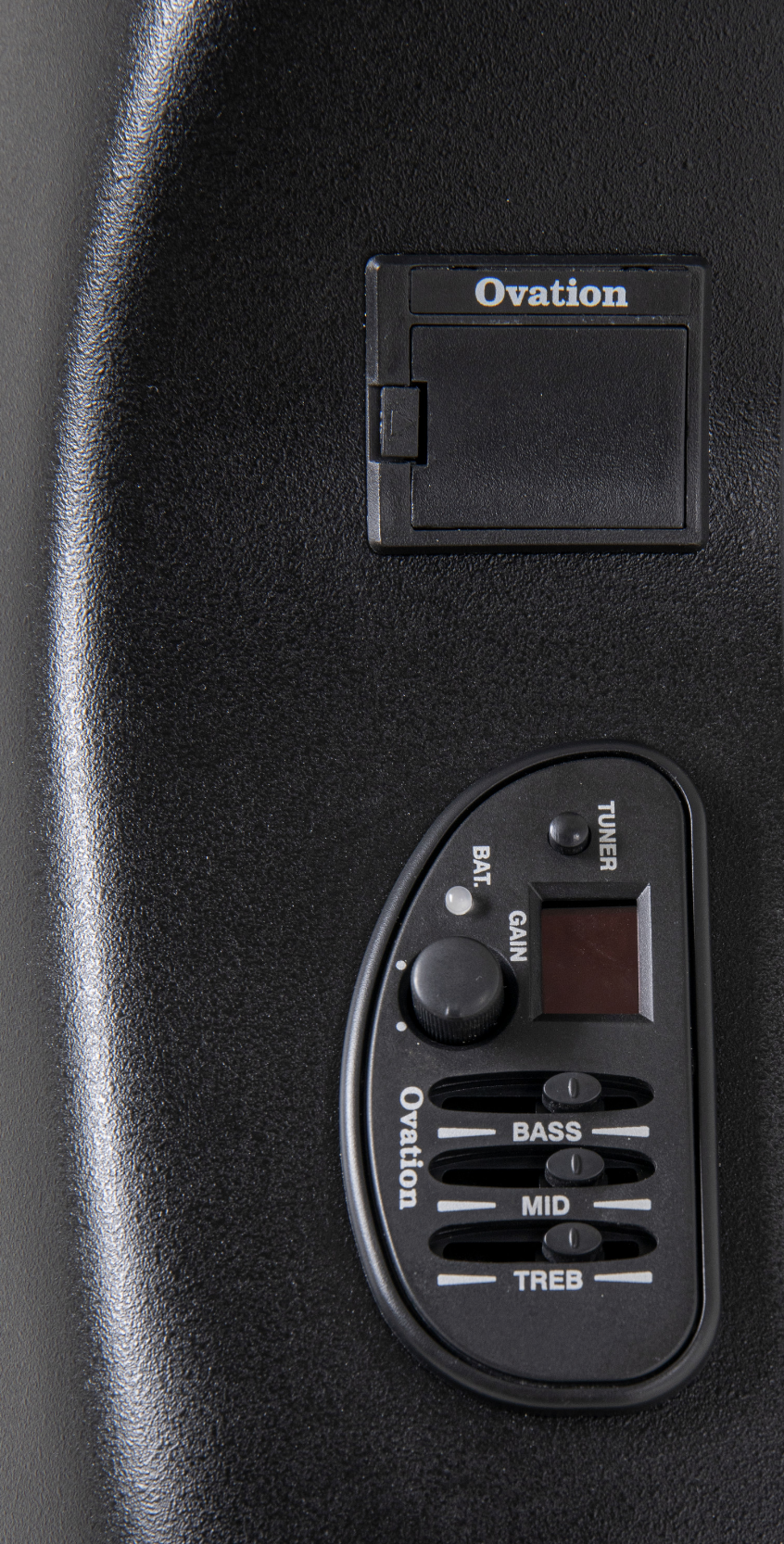Il suono acustico della Celebrity 2024 è corposo, definito e articolato: un carburante già brioso, che si arricchisce di ottani quando viene catturato e restituito dal sistema di preamplificazione di casa Ovation, costituito dal piezo CP-100 Slimline Pickup e dal preamp OP-4CT, quest’ultimo dotato di Master Volume, Eq a tre bande (Bass, Mid, Treb) e di accordatore. Alimentazione: 9V,