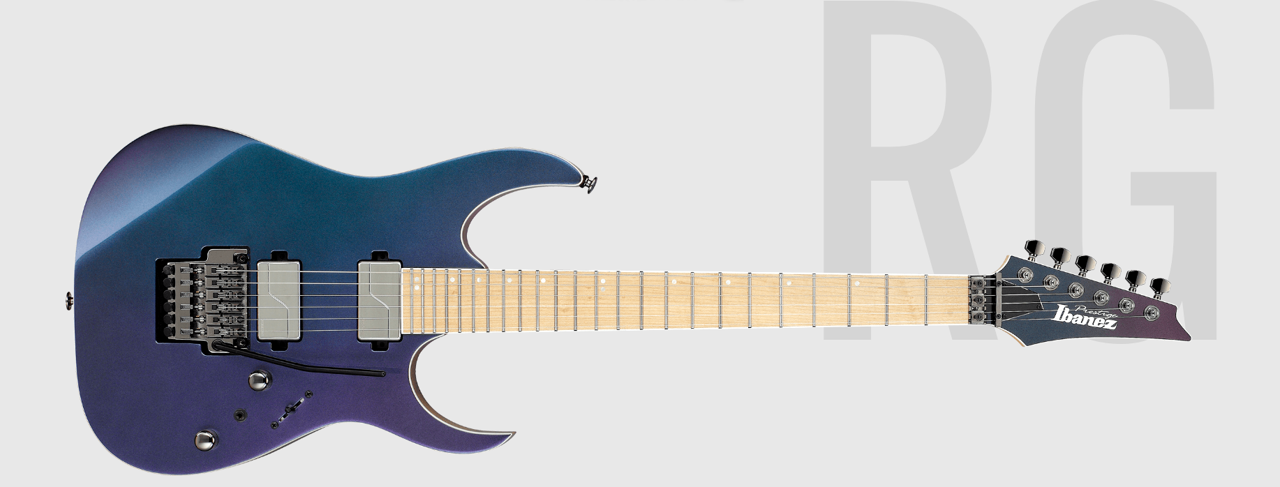 Disponibile nelle due finiture Frozen Ocean e Polar Lights, la Ibanez RG5120 Prestige è corredata di di custodia rigida.