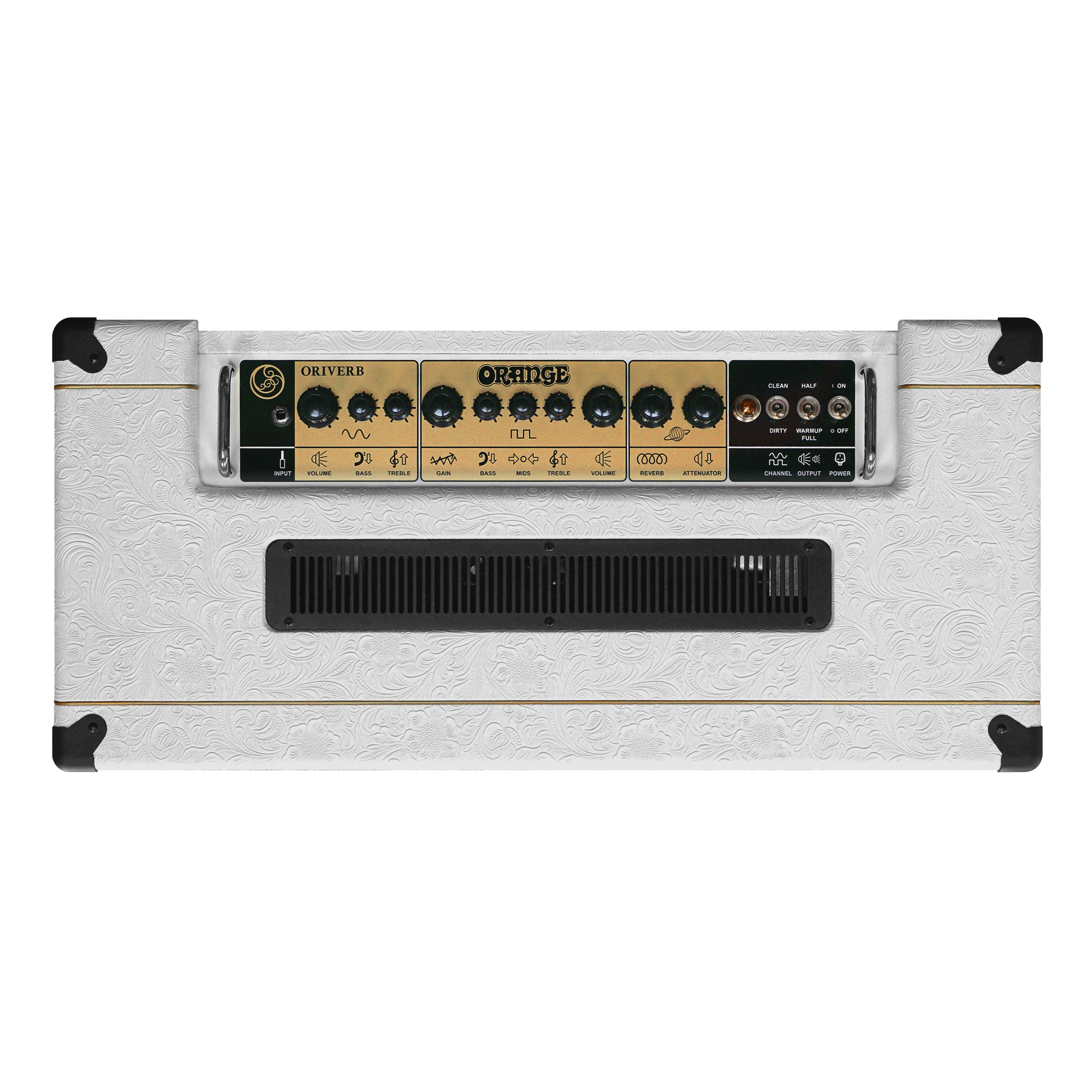 Con le sue dimensioni contenute, lo chassis del nuovo Oriverb è in Betulla del Baltico, di qualità selezionata, il legno scelto da Orange per collocare il combo tra i più leggeri 2x12” sul mercato; inoltre, sempre nell’ottica di contenere il peso dell’amplificatore, naturalmente pensando anche al massimo della resa del suono, il marchio britannico opta per una coppia di speaker Celestion Neo Creamback 12”, leggeri, e made in England. Lo stesso chassis è rivestito da un Tolex bianco con pattern decorativi in western-style, a cui si aggiunge una griglia frontale nera su cui campeggia l’inconfondibile logo di casa Orange; due sottili filetti dorati percorrono i pannelli laterali dello chassis...