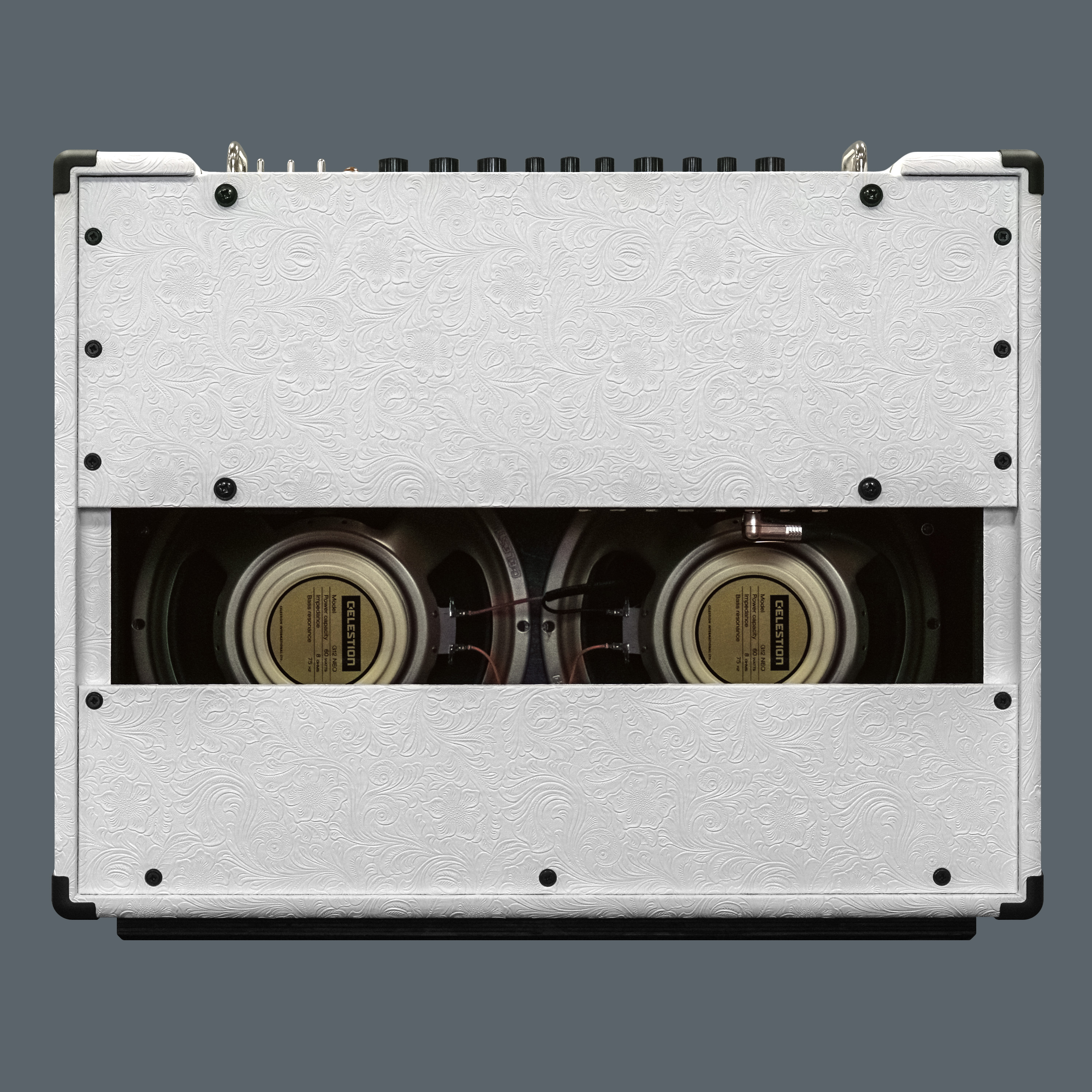 Classe A/B – 50 watt/25 watt – Due canali selezionabili – Canale Clean: Volume, Bass, Treble – Canale Dirty: Gain, Bass, Mid, Treble – Valve Driven Reverb – Attenuator – Effect Loop – Speaker: 2x Celestion Neo Creamback 12”(16 ohm) – Valvole preamp: 4x ECC83 (o 12AX7)/ 2x ECC81 (o 12AT7) – Valvole finale di potenza: 2x EL34 – Dimensioni: cm 66,5 x 53,5 x 20,5 – Peso: kg 31