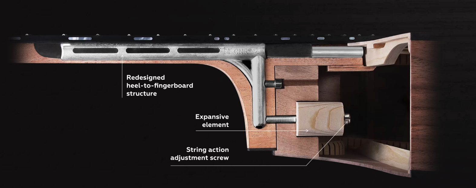 Sono quattro le combinazioni dei legni che Furch rende disponibili per la Pioneer a favore delle nuance sonore più diverse, ma tutte le versioni sono dotate di Booster Soundport sulla spalla superiore per fornire una spinta aggiuntiva al suono; del sistema CNR System Active di Furch per la regolazione automatica dell’action delle corde e della singola spalla mancante per agevolare l’escursione della mano fino ai tasti più alti. Tutte sono costruite nella sede del celebre marchio cecoslovacco.