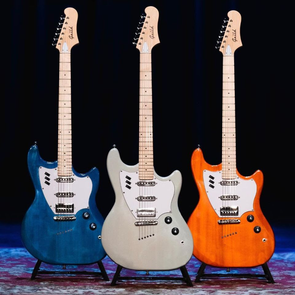Logo Guild in stile anni ’80 sulla paletta e finitura lucida trasparente per il body; tre le colorazioni disponibili: Sunset Orange, White Sage e Catalina Blue.