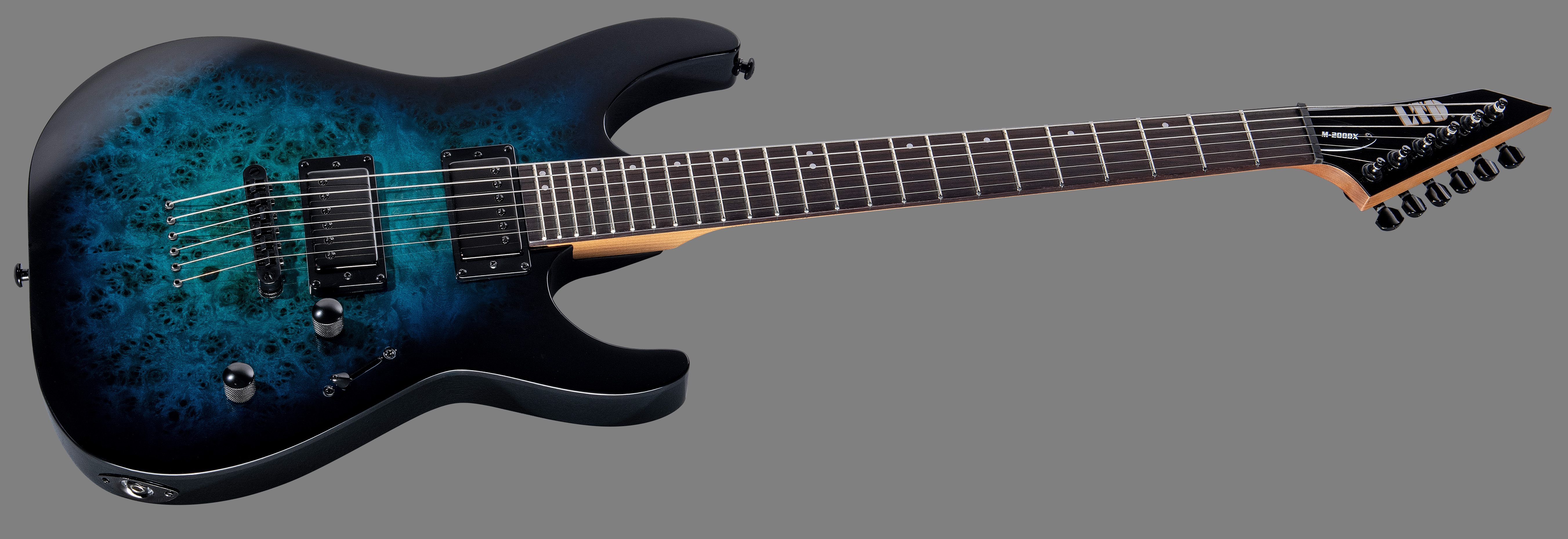 Costruzione: Bolt-on – Scala: 25,5” – Body: Poplar – Top: Poplar Burl – Manico: Roasted Maple – Profilo manico: Thin-U – Tastiera: Rosewood – Radius: mm 350 – Tasti: 24 XJ – Segnatasti: dot – Capotasto: sagomato, mm 43 – Meccaniche: LTD – Ponte: TOM String-thru – Hardware: Black Chrome – Humbucker: ESP LH-150N (manico), LH-150B (ponte) – Selettore: 3 posizioni – Controlli: Volume, Tone (con split push/pull) – Corde: D’Addario YB-XL10 (010-046) – Finiture: Purple Burst e Blue Burst
