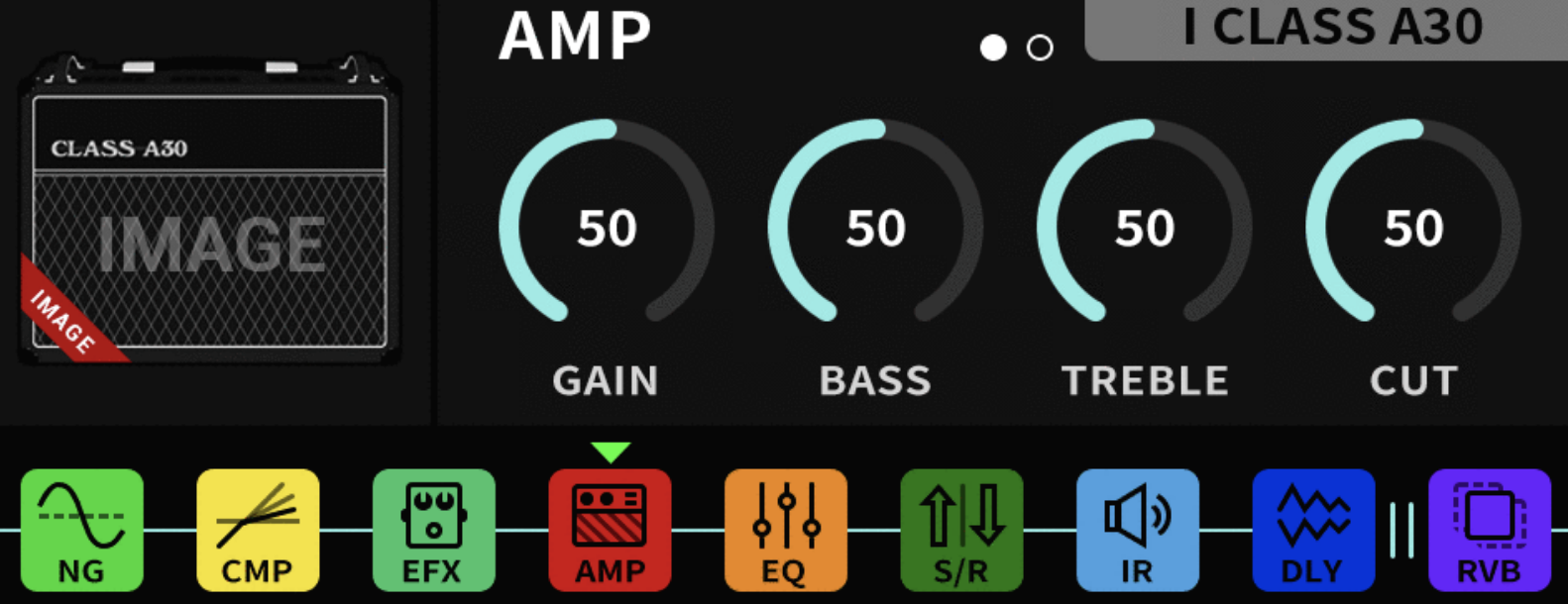 Riproduzione di IR (60 Factory e 40 User) di grado premium e regolazioni del microfono (posizione e distanza incluse) tramite tecnologia Cyber IR™ di Nux; looper stereo di 30 secondi (utilizzabile in modalità Auto Record o Normal Record) impostabile in posizione pre o post nel percorso del segnale; EQ, Phone...