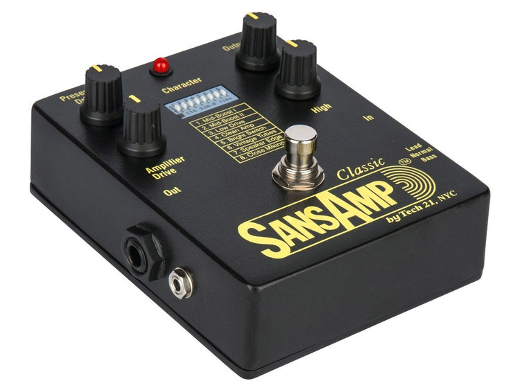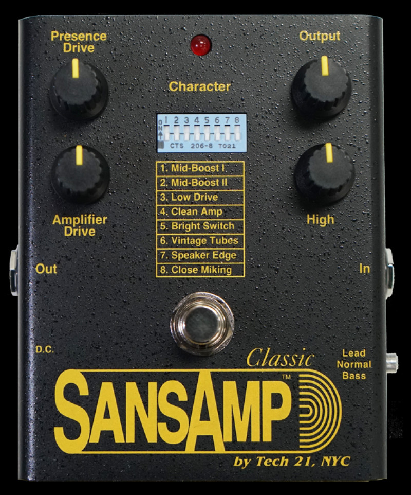 Dal punto di vista operativo, il SansAmp Classic beneficia di otto Character Switch che permettono la regolazione fine di tonalità, armonici e dinamiche, mentre un selettore d’ingresso a 3 posizioni offre la scelta di differenti stili di preamp – Lead (stile Marshall), Normal (stile Mesa/Boogie) e Bass (stile Fender) – eccellenti per le ritmiche e per il basso. In aggiunta, quattro controlli rotativi (Presence Drive, Amplifier Drive, Output e High) sagomano il contour di preamp, power amp, volume e suono finale.