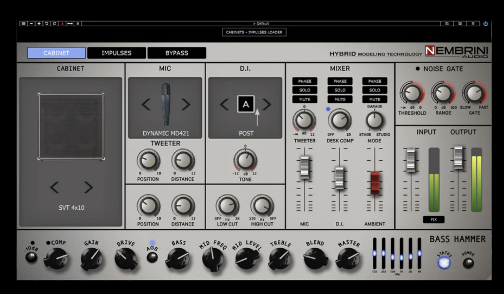 Modellato sulla popolare testata Tone Hammer di Aguilar, il nuovo plugin Nembrini si pone come la sua controparte digitale, catturando quelle features che ne fanno da sempre un veicolo votato alla flessibilità e versatilità ad ampio spettro; tra esse, Adaptive Gain Sculpting (AGS), EQ grafico a sei bande, simulazioni cab/microfoniche, segnale D.I, console per compressore e riverbero. Tutto, a restituire in formato digitale l’organica rotondità del suono, il suo accurato shaping ed il dettagliato controllo del range delle medie, da sempre prerogative della testata Aguilar Tone Hammer in formato fisico.