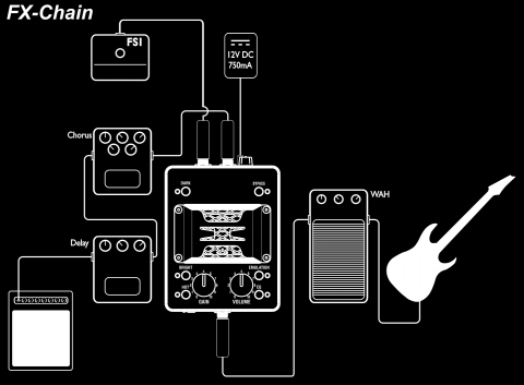 Iron Heart è fondamentalmente un pedale e, come tale, può naturalmente essere inserito nella catena effetti della pedaliera di un chitarrista.
