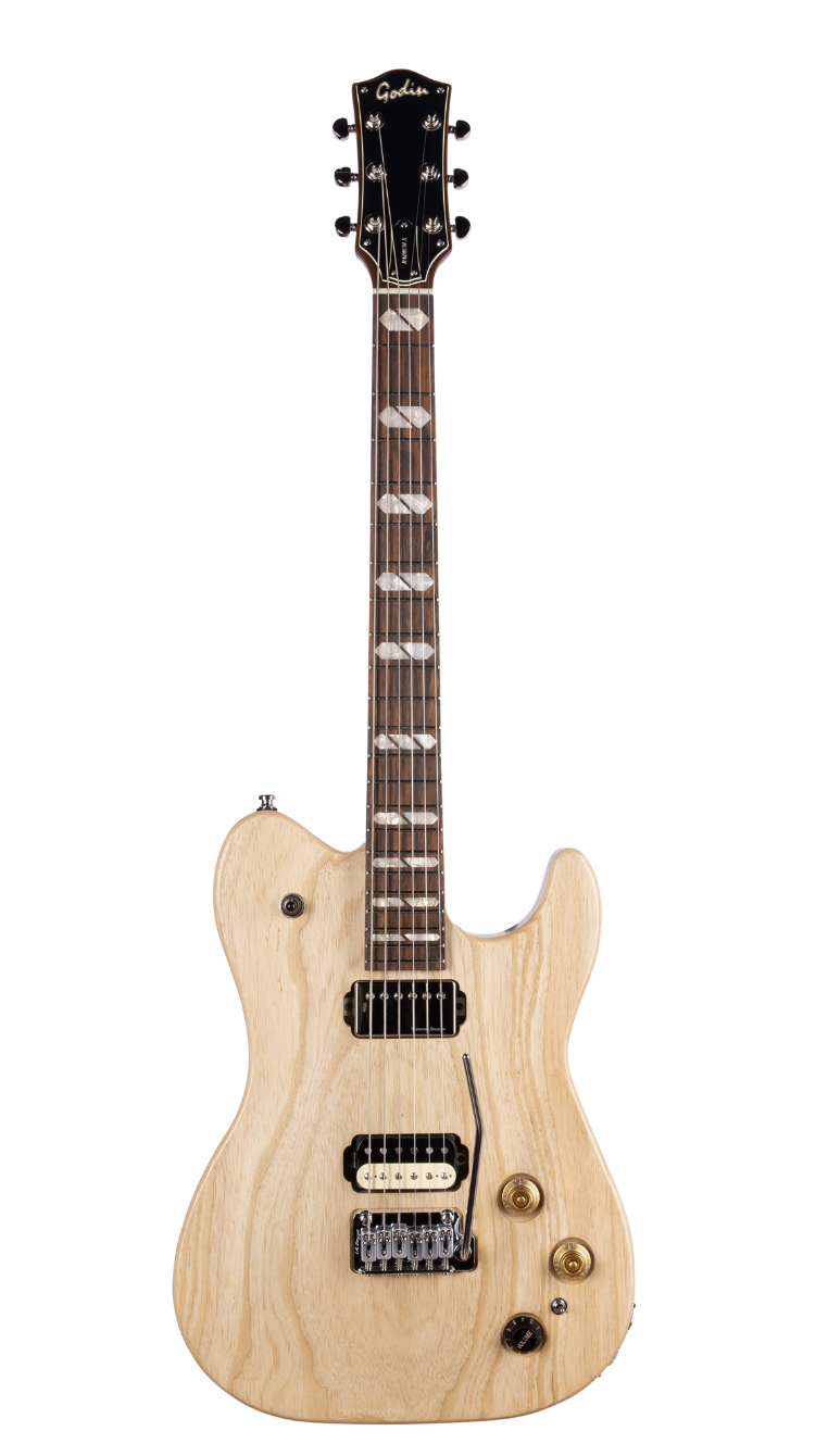 Body di tipo scavato (chambered), in mogano, top arcuato in frassino, manico in mogano e tastiera in palissandro, la nuova Godin Radium-X si propone in due finiture: Natural e Rustic Burst.
