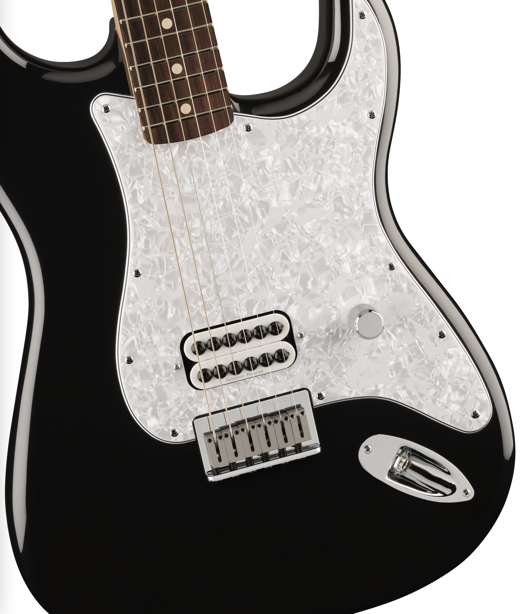 Ponte hardtail con sei sellette in acciaio a garantire la stabilità dell’accordatura anche con il guitar playing più vigoroso ed humbucker Seymour Duncan Invader con un segnale in uscita potente ad assicurare al suono un volume enorme, sono i punti di forza della Fender Tom DeLonge Stratocaster Limited Edition.