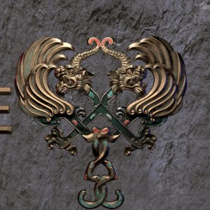 del disco, raffigura il leopardo delle nevi, che simboleggia il Paradiso (Tengri). Una delle tre figure (accanto a Moon e Sun) adorate dalle antiche tribù della Mongolia.