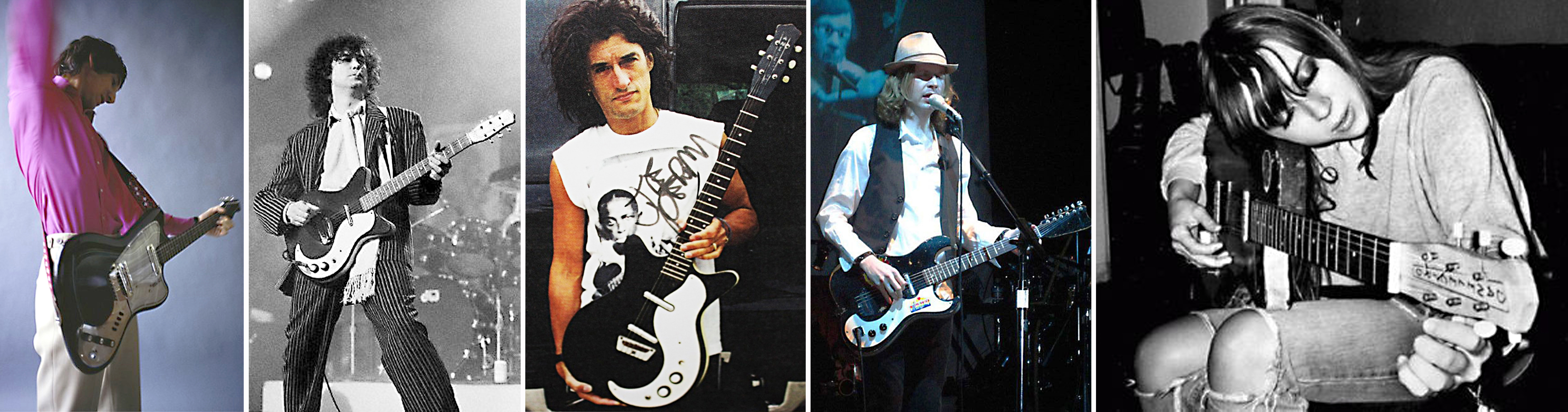 Syd Barrett, Beck, Jeff Beck, Billy Bragg, Jack Bruce, Peter Buck, J.J. Cale, Randy California, Glen Campbell, Mike Campbell, Eric Clapton, Bruce Cockburn, Ry Cooder, Elvis Costello, Dum Dum Girls, Dave Edmunds, John Entwistle, Melissa Etheridge, John Fogerty, John Frusciante, Rory Gallagher, Jerry Garcia, Kirk Hammett, George Harrison, Greg Hill, John Lee Hooker, Steve Howe, Mick Jagger, Mark Knopfler, Jeff Lang, Alvin Lee, Alex Lifeson, David Lindley, Steve Marriott, Jeff Martin, Mike McCready, Fat Mike, Rick Miller, Jason Molina, Graham Nash, Dave Navarro, Colin Newman, Juice Newton, Jimmy Page, Brad Paisley, Rick Parfitt, Adam Pawlowski, Joe Perry, Tom Peterson, Tom Petty, Cat Power, Elvis Presley, Steve Priest, Dee Dee Ramone, Noel Redding, Kid Rock, Daniel Rossen, Erica Rubin, Richie Sambora, Robert Schneider, Pat Smear, Joey Spampinato, Bruce Springsteen, Billy Squier, Garry Tallent, Jagori Tanna, Porl Thompson, Richard Thompson, Pete Townshend, Corin Tucker, Ike Turner, Jeff Tweedy, Eddie Van Halen, Jimmie Vaughan, Tom Verlaine, Tom Waits, Miroslav Wanek, Brian Wilson, Ron Wood, Link Wray, Thom Yorke, Frank Zappa...