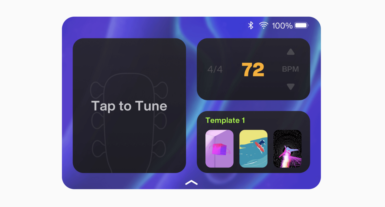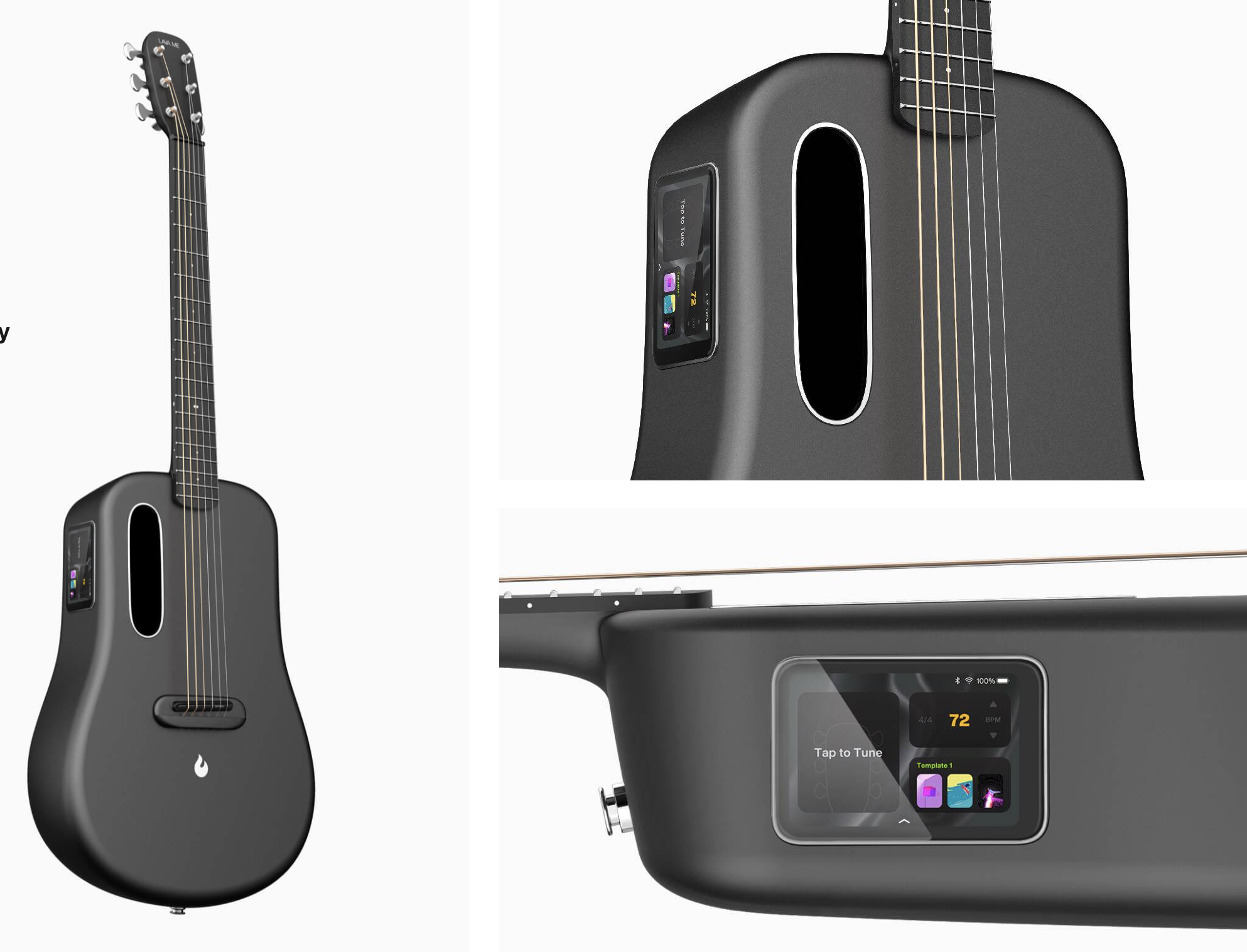 Sulla spalla superiore della chitarra, campeggia un display multi-touch da 3.5” che permette l’accesso a tutte le funzionalità messe a disposizione dal sistema operativo onboard: accordatore, metronomo, effetti dedicati, loop station, registratore… Tutto, quindi, è accessibile dallo schermo LCD, e nessuna app necessita di altro se non della chitarra stessa.
