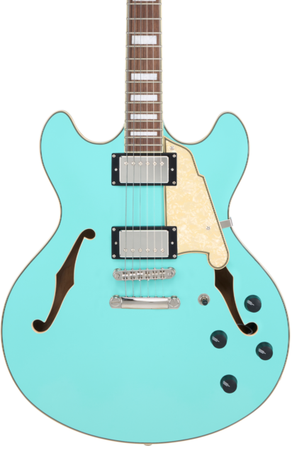 Proposta da D’Angelico in sei attraenti finiture, la Premier DC è una semi-hollow a doppia spalla mancante, dotata delle due peculiari buche a-effe sul top e di un sinuoso body sottile (1.75”) con center block e dimensioni generose (16”), che si prefigge di consegnare al suono una massiccia dose di volume e sustain. E proprio perché il suono possa godere dell’ideale balance tra le frequenze medie più presenti ed articolate e quelle più high-end, D’Angelico equipaggia la Premier DC di due humbucker (posizionati a manico e ponte) espressamente concepiti allo scopo, selezionabili tramite switch a tre posizioni, e ciascuno dotato dei controlli di Volume e Tono.