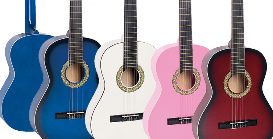 Primera Color – Questa serie di chitarre classiche di tipo entry level (nel formato 4/4 e 3/4), amplia il ventaglio delle finiture aggiungendo ora le accattivanti Sunburst, Blue Sunburst, Red Sunburst, Pink e White.