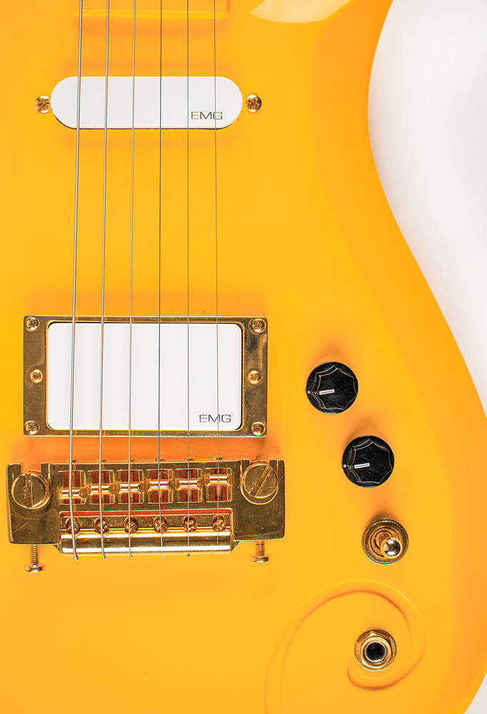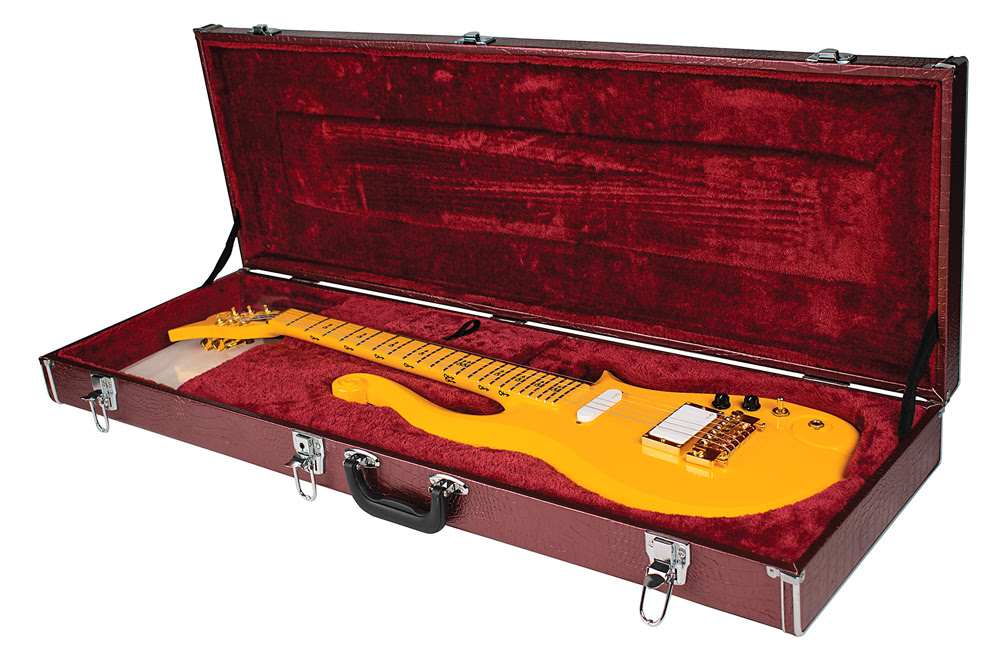 La Cloud Guitar Yellow Custom di Prince rivela una riparazione sulla paletta, un paio di piccoli interventi sulla vernice in prossimità dei pickup a ponte e manico, qualche lieve graffiatura sul retro del body e piccole scheggiature all’interno del ricciolo del body, ma nulla di ciò influisce sulla magnificenza di questa leggendaria seicorde.