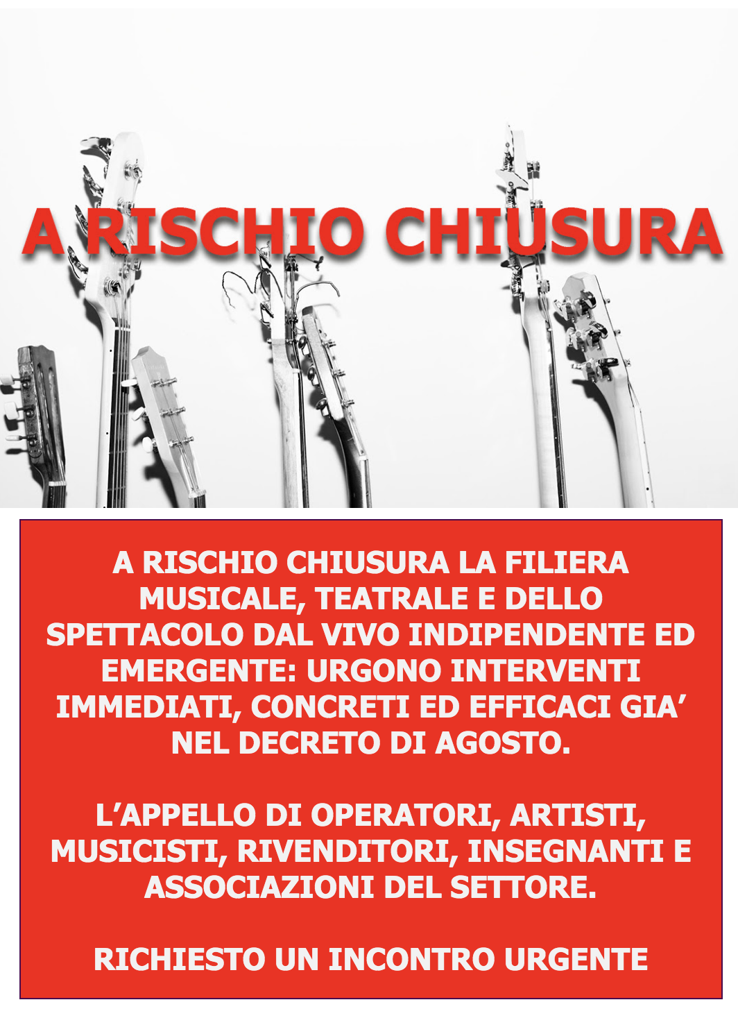 Solo con queste immediate azioni si potrà uscire subito da una profonda crisi del settore e sostenere tutta la filiera e rimettere in moto l’economia della musica, degli strumenti musicali, del teatro, dello spettacolo dal vivo anche amatoriale e del settore educativo-musicale e teatrale che alimenta il mercato discografico musicale e teatrale: dai produttori ai promoter, dagli attori ai comici, dalle orchestre alle band e dai cantanti ai musicisti e dai dj ai danzatori, dagli insegnanti di musica e teatro agli operatori e collaboratori delle imprese e associazioni educativo-musicali e teatrali, dai club alle discoteche, dagli autori agli editori, dai circoli alle balere, dai tecnici degli impianti audio e luci ai rider e backstage di palco, dagli studi di registrazione alle sale prova, dagli uffici stampa ai media social manager, dai produttori di strumenti musicali ai negozi di strumenti musicali, ai grafici, dai fotografi ai negozi di dischi e dvd fino ai videomaker e agli stampatori di supporti fisici come cd, dvd, vinili e altri formati.