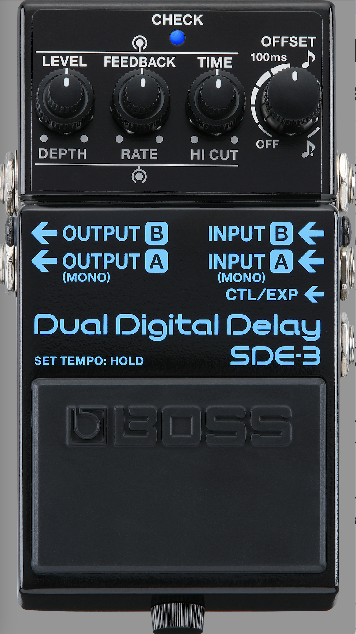 Oltre alla riproduzione del suono monofonico dell’SDE-3000 delle origini, il nuovo Boss SDE-3 consegna al musicista la possibilità di aggiungere un secondo delay, la cui durata in millisecondi è regolabile tramite il controllo Offset: il tutto, allo scopo di beneficiare di due delay simultanei e, dunque, di uno spettro di colori (mono e stereo) ampio e carico di nuance, abbinabile peraltro a suoni raddoppiati ed in sync (Tap Tempo).