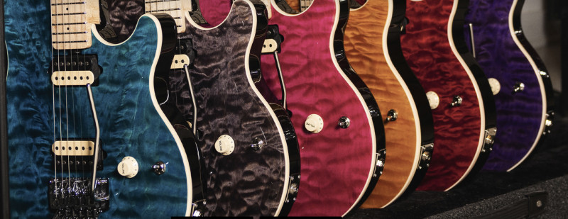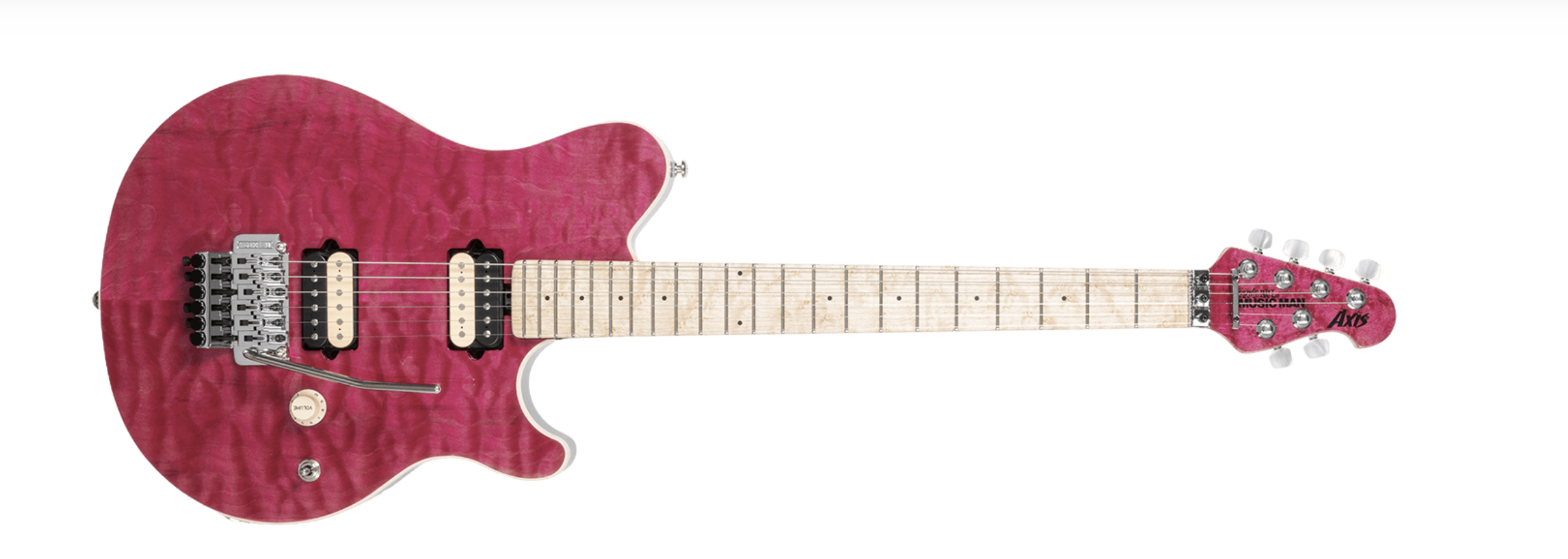 La Music Man Axis 30th Anniversary viene proposta in sei finiture traslucide – Gold, Black, Blue, Pink, Purple e Red – studiate per mettere in evidenza i top in acero figurato, con continuità cromatica estesa anche alla paletta. Un approccio estetico coerente con la tradizione del modello in questione, dove la resa visiva del legno resta parte integrante dell’identità globale.