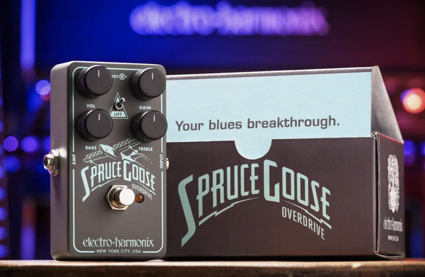 Si chiama Spruce Goose ed è il nuovo overdrive di casa EHX pensato per offrire trasparenza e dinamica. Il circuito di partenza è quello del BB, ma EHX lo espande per garantire ulteriore versatilità. Controlli separati per Bass e Treble si aggiungono ai canonici Volume e Gain, ma è lo switch denominato Lift a svolgere la funzione più interessante. Quest’ultimo offre tre livelli di input gain (ovvero un boost incorporato nel pedale), consentendo allo Spruce Goose di godere di un quantitativo di saturazione molto più generoso del BB originale.