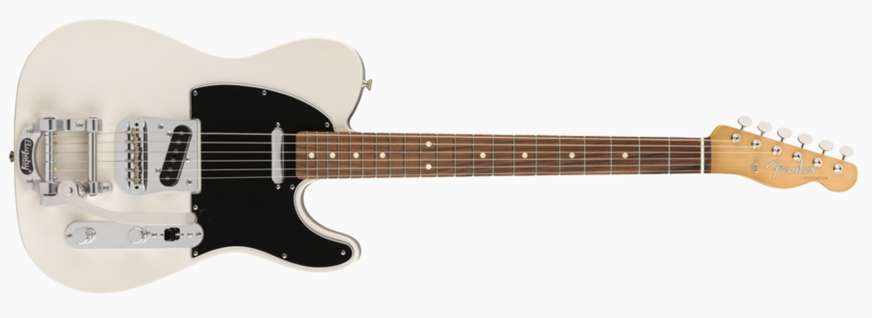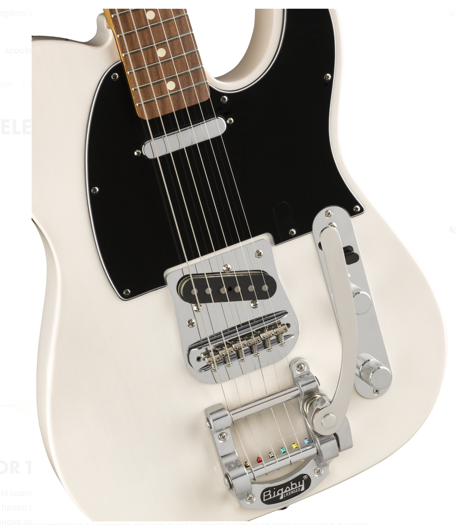 – Radius: 7,25” – Pickup: 2x ‘60s Tele SingleCoil – Ponte: Tele Bigsby – Hardware: cromato – Astuccio: Deluxe Gig Bag – Finiture: White Blonde e 3-Color Sunburst