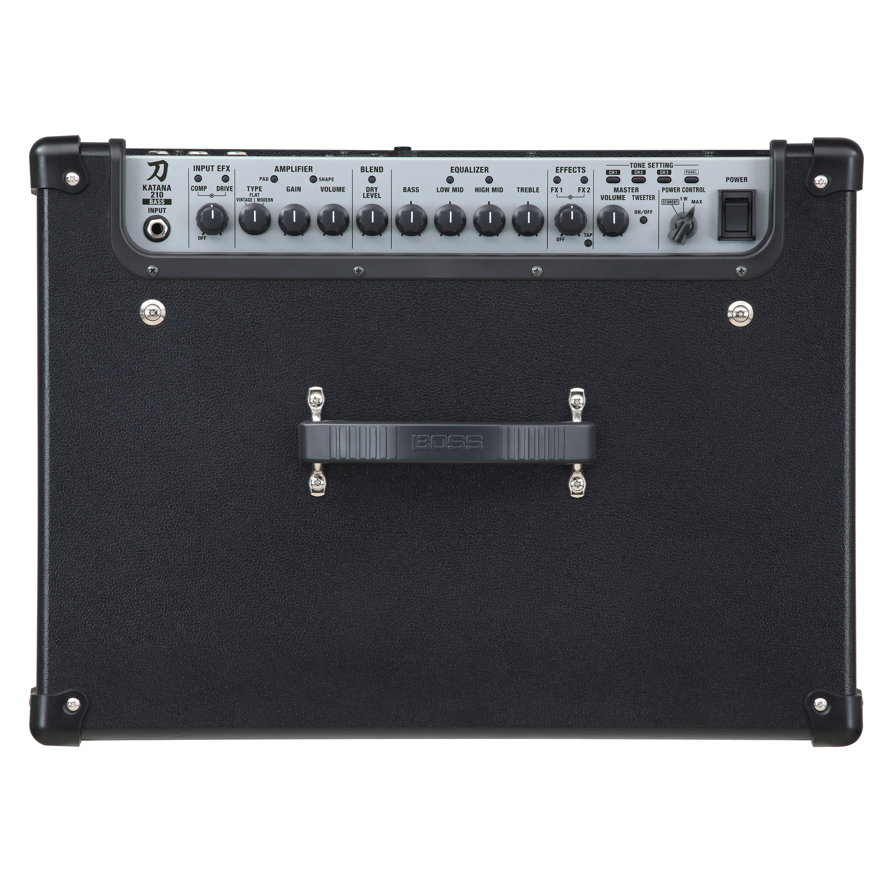 Chassis con rivestimento vinilico nero, griglia frontale nera con il peculiare logo Boss Katana in bella vista, solida maniglia per il trasporto e pannello dei controlli situato sulla parte superiore dello chassis. Sul pannello posteriore il comparto dedicato a prese e connessioni. Sono questi gli elementi estetici dei due nuovi combo Katana per basso, dal look raffinato e layout dei controlli ben congegnato.
