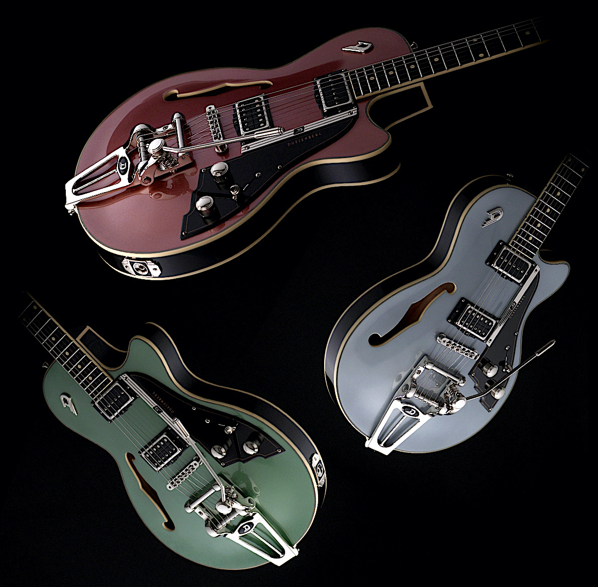 La Duesenberg Paloma propone ora le finiture Catalina Sunset Rose e Catalina Harbor Green, mentre la Caribou sfodera la tradizionale finitura Butterscotch Blonde.