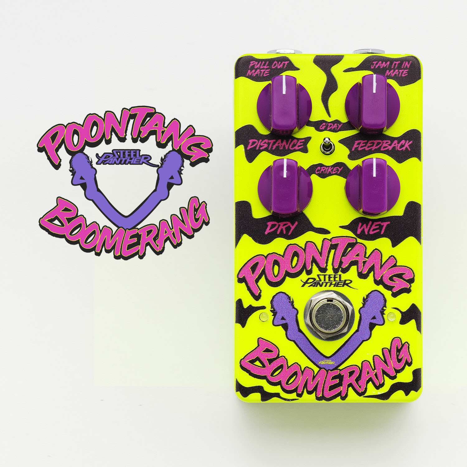 Sviluppato dallo stesso Satchel negli Stati Uniti, in collaborazione con il medesimo team che ha prodotto il precedente Pussy Melter Pedal, il nuovo Poontang Boomerang si presenta con il suo variopinto chassis, quattro potenziometri viola nominati Distance, Feedback, Dry e Wet, un mini-selettore G/Day e Crikey e naturalmente, lo switch a pedale. Costo: USD 199,99