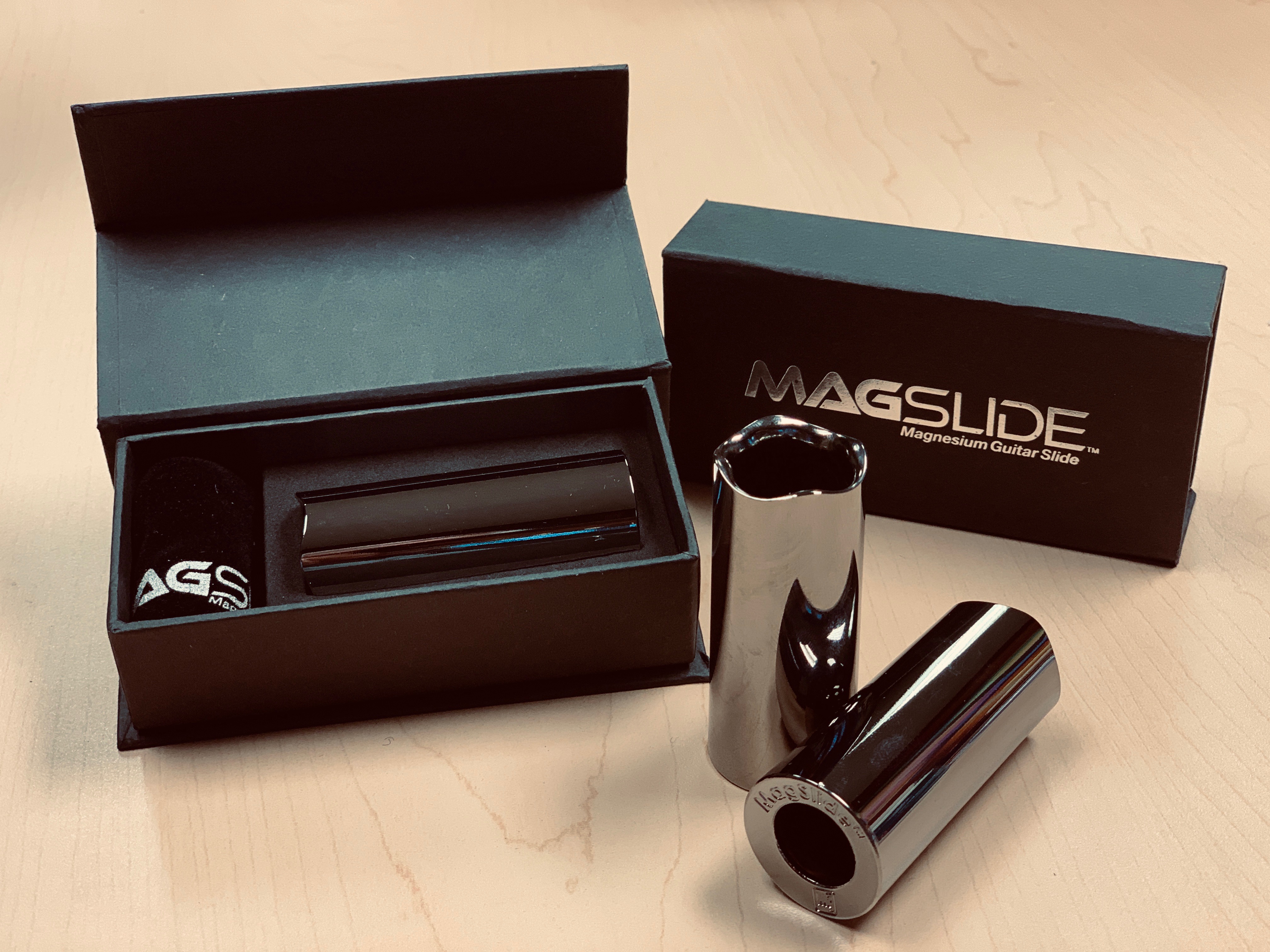 Superficie cromata (Black Chrome), leggero e confortevole da “indossare”, il nuovo MagSlide garantisce al chitarrista la massima libertà di movimento sulle corde della chitarra. Viene proposto in una raffinata ed agile confezione corredata di apposito panno.