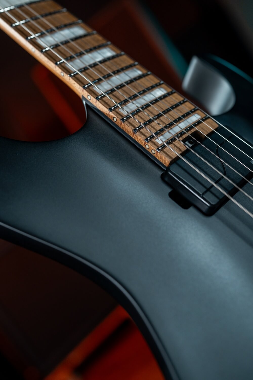 Il body in tiglio fornisce una base equilibrata, evitando eccessi sulle basse e lasciando spazio a una gamma media definita, elemento fondamentale per emergere in un mix denso e corposo. Il manico in acero roasted e noce aggiunge una componente di rigidità che si traduce in attacco preciso e sensazione di immediatezza sotto le dita, particolarmente apprezzabile nei palm-mute serrati e nelle parti ritmiche sincopate.
