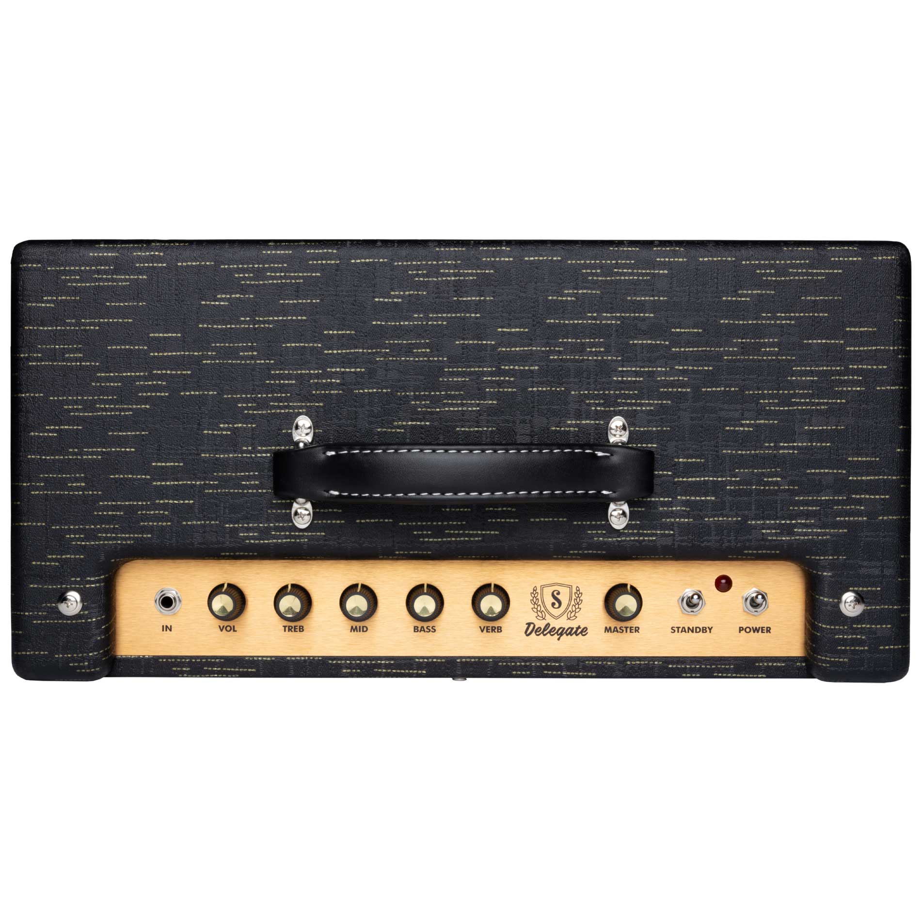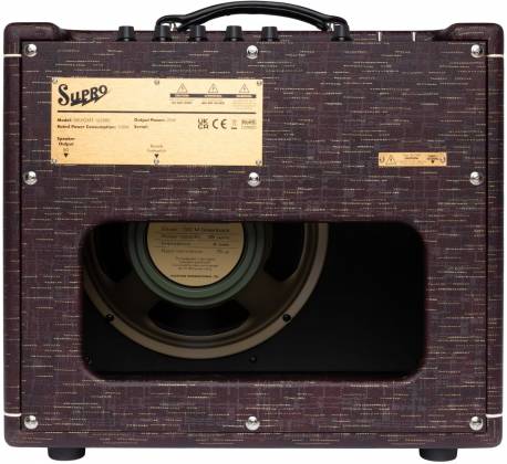 Il cabinet del nuovo Delegate Custom di casa Supro dà alloggio a una serie di componenti di prim’ordine: trasformatori Mercury Magnetics, capacitori Mallory vintage rivisitati, valvole EHX perfettamente accoppiate, spring-reverb valvolare, e uno speaker Celestion Greenback da 12”. In quanto al preamp, è pilotato da tre valvole EHX 12AX7 più una 12AT7, mentre il finale di potenza da due 6V6 e, riguardo al pannello dei controlli, si appropria di sei potenziometri rotativi: Volume, EQ (Treb/Mid/Bass), Verb e Master Volume. I due switch Stanby e Power, più la presa a jack per la chitarra, completano il pannello.