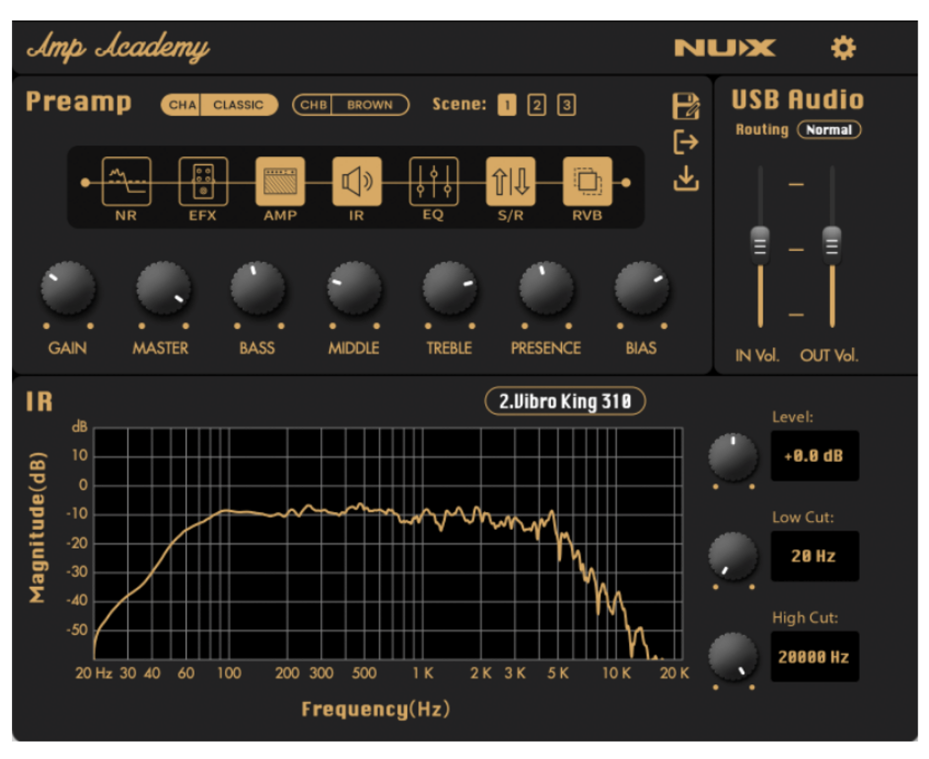 Tecnologia IR ad alta definizione, più loader per IR di terze parti, Amp Academy NGS-6 suddivide i dodici suoni di bordo in 6 famiglie (Vintage, Classic, Modern, Brown, Red e Iridium), ciascuna delle quali ripercorre il suono di due iconici amplificatori, con tanto di dinamiche, risposte e feel dei reali amplificatori valvolari a cui si riferiscono. Regolazione del Bias.