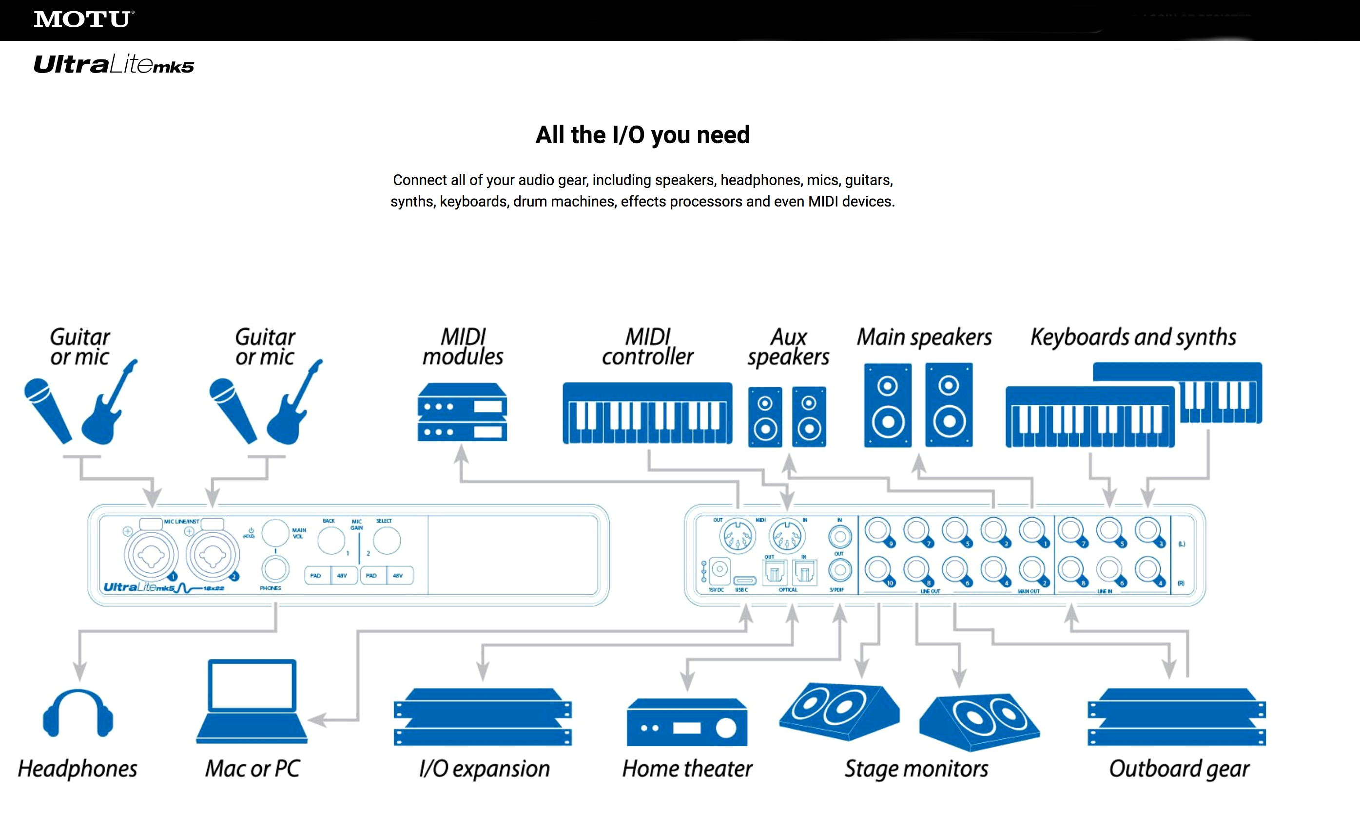 Alloggiato in uno chassis compatto e robusto, agilmente trasportabile ovunque, UltraLite-MK5 è adatto sia per lo studio che per il palco, per l’utilizzo con e senza computer, come interfaccia o mixer standalone.