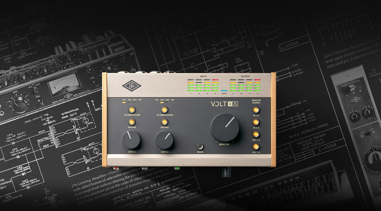 Dotazioni di bordo: compressore FET basato sul classico 1176 di casa UA (nelle versioni Volt contraddistinte dalla sigla 76); modalità Vintage Preamp in grado di consegnare saturazione dinamica e clipping valvolare del preamp UA 610, ed una suite di software per la produzione musicale. Tra essi: simulazioni di ampli Softube e Brainworx, Virtual Instruments UJAM e Spitfire Audio, riverbero Relab LX480, Melodyne per la modifica del pitch e Ableton Live Lite per la produzione musicale.