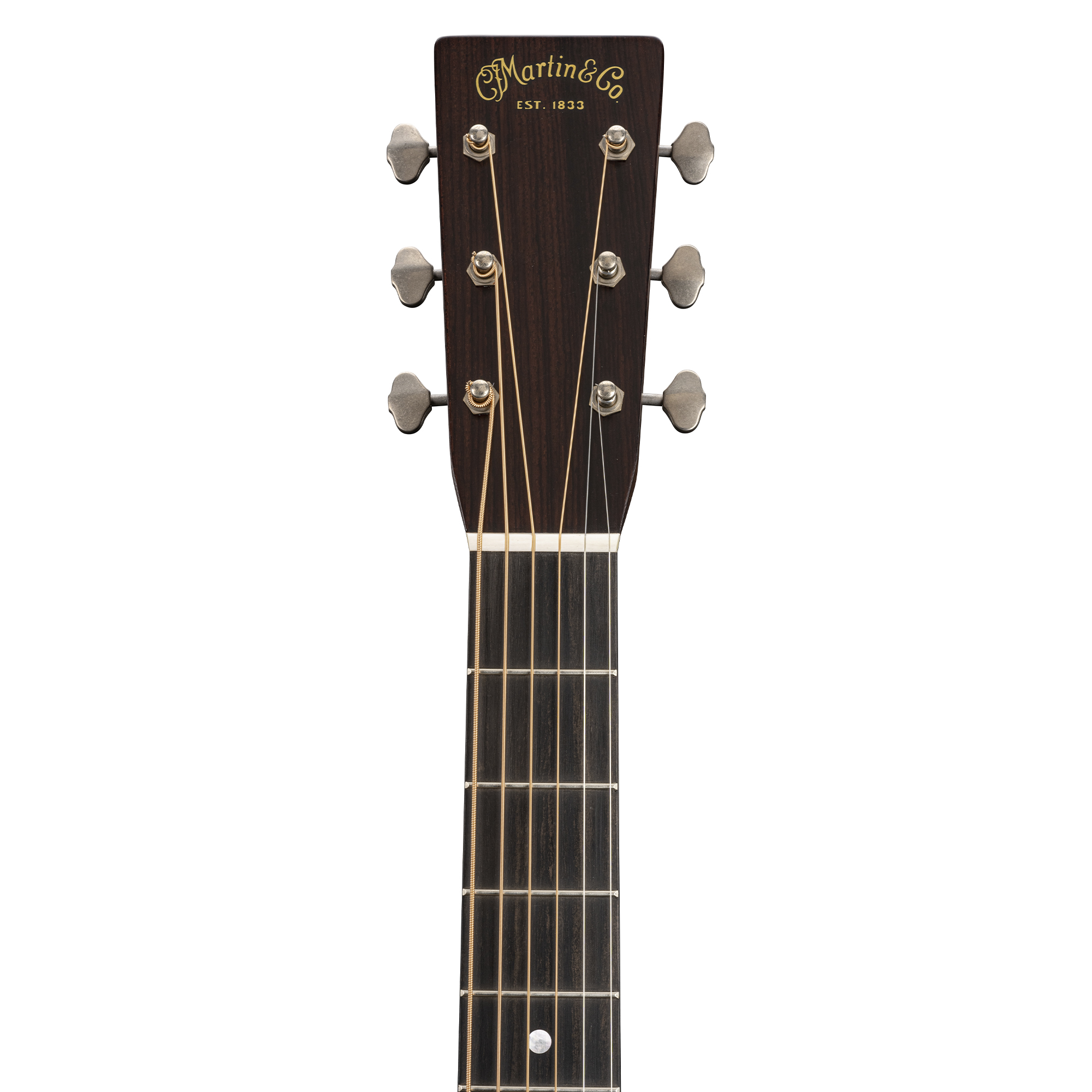 Fondo/fasce: palissandro indiano (East Indian Rosewood) – Top: Spruce – Pattern catenature: Forward Shifted X Brace – Rosetta: multi-stripe – Battipenna: tartarugato, invecchiato – Manico: mogano – Scala: 25,4” – Tastiera: ebano – Tasti: 20 – Segnatasti: dot, madreperla – Capotasto/sellette: osso – Meccaniche: nickel, Open Gear – Ponticello: Ebano – Custodia: Hardshell – Corde suggerite: Martin Authentic Acoustic Lifespan 2.0 (Medium MA550T) – Prezzo: USD 2.399,00