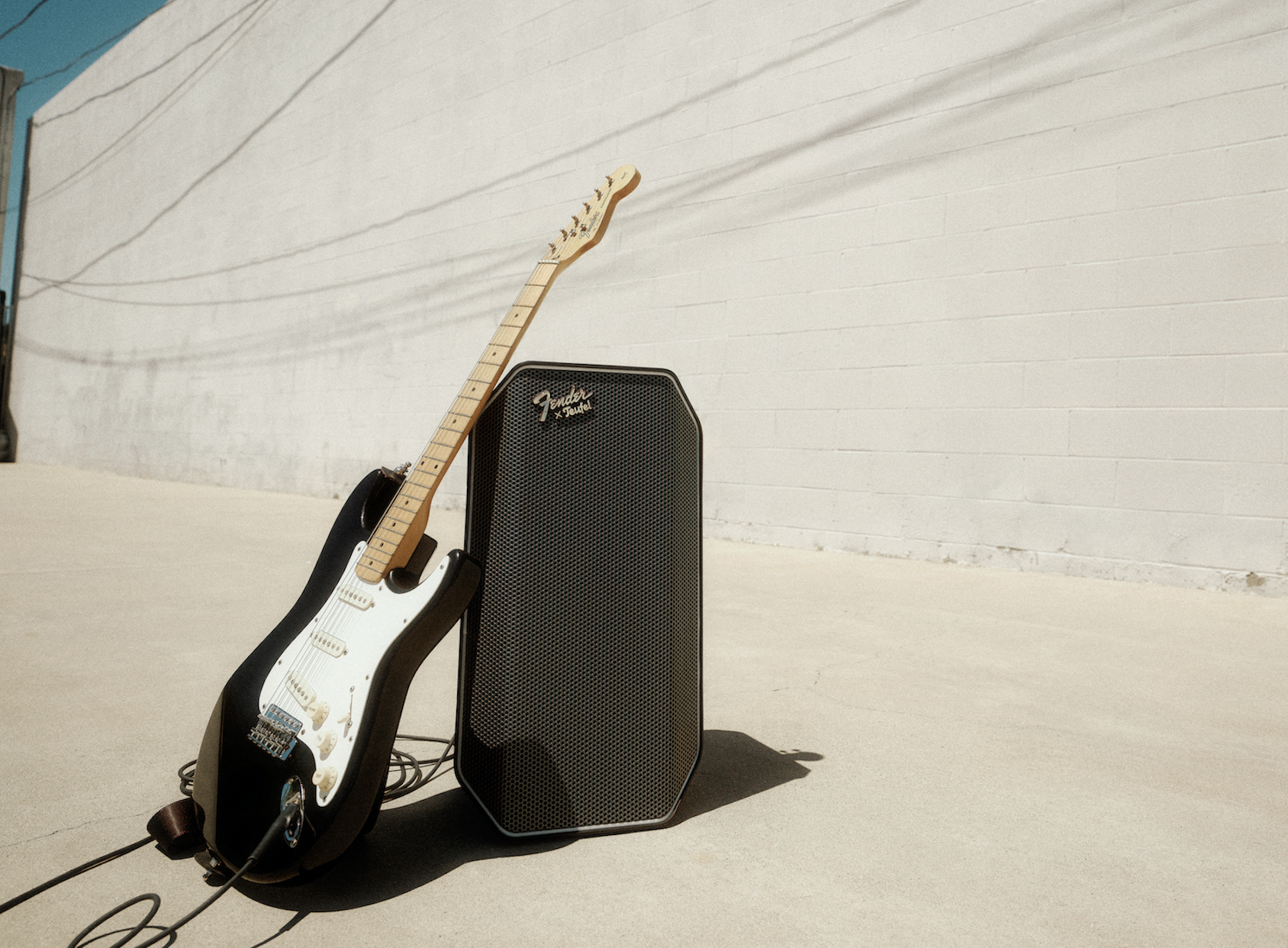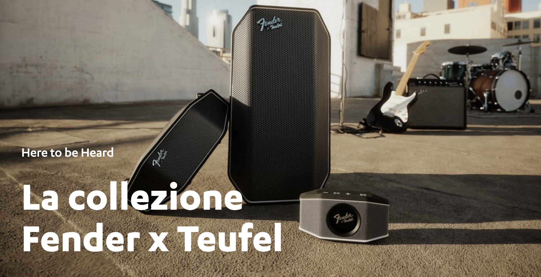 “La combinazione estetica bianco/nero che rende omaggio alle iconiche curve delle Fender Stratocaster, Telecaster e Jazzmaster, viene ripresa dal profilo dei diffusori, mentre il logo cromato, con la sua tipica posizione inclinata, proviene direttamente dagli amplificatori Fender...” – dichiara Teufel riguardo alla nuova serie Rockster – “e il tutto si completa con tracolle e accessori Fender, secondo il modello proposto...”