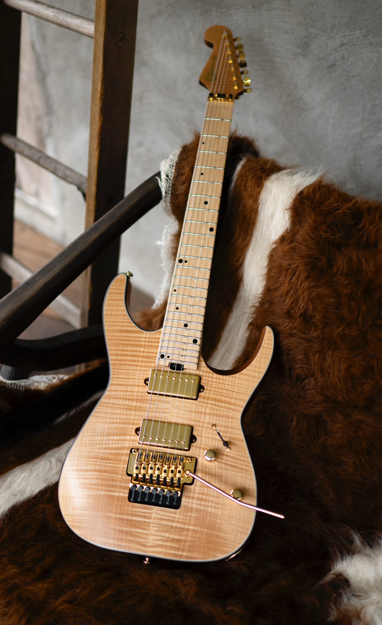 7 String – Costruzione: Bolt-on – Body: Caramelized Basswood – Top: Flame Maple – Scala: 25,5 (mm 648) – Manico: Maple con rinforzo in grafite, regolabile – Tastiera: Maple – Radius: 12”-16” compound – Tasti: 24, Jumbo – Segnatasti: Cascading Black Dot più Luminlay – Capotasto: Gotoh, autobloccante – Paletta: Reverse, Licensed Fender Stratocaster – Meccaniche: pressofuse – Ponte/tremolo: Gotoh GE1996T-7 Double Locking – Humbucker: DiMarzio, Tone Zone (ponte), Air Norton (manico) – Selettore: 5 posizioni – Controlli: Volume, Tone – Hardware: Gold – Finitura: Natural (NAT)