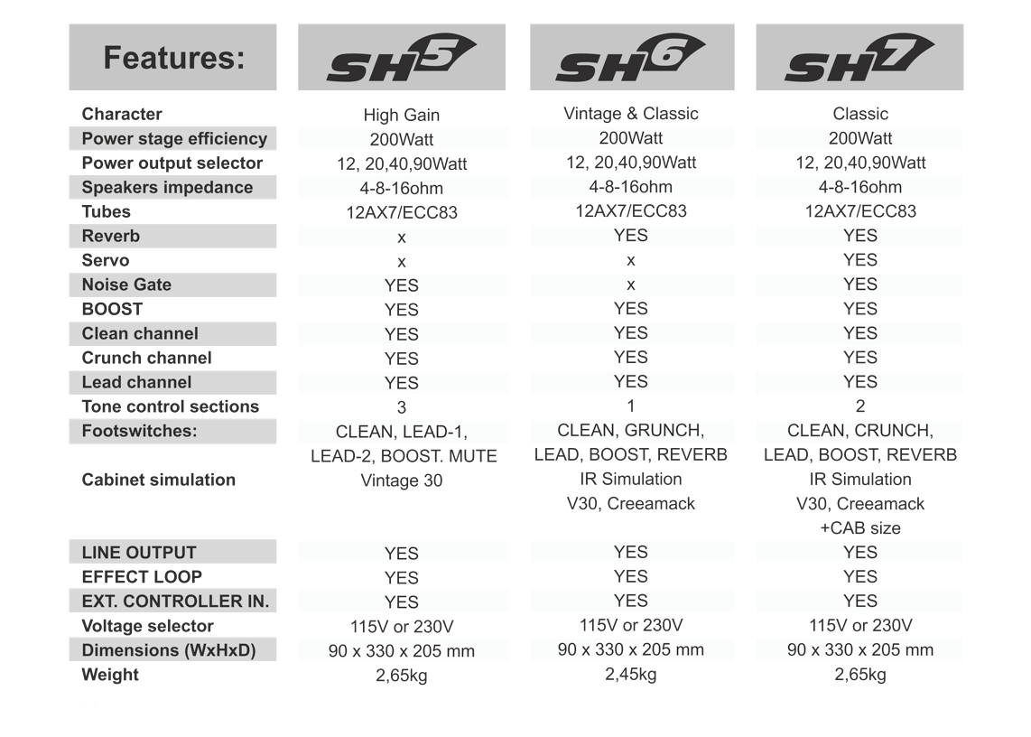 High Gain e la versione SH7.CE per i suoni di tipo Classic. Ad esse si aggiunge anche la versione SH7 Apogee.