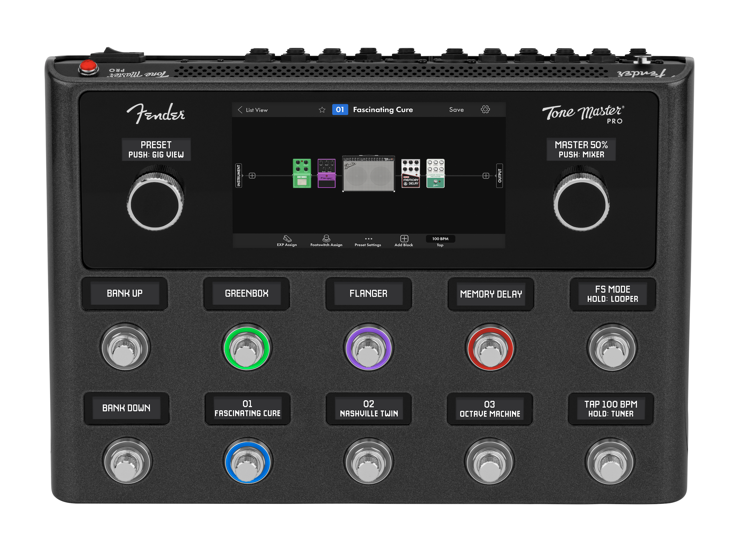 Chassis robusto e leggero in formato pedaliera, layout e grafica all’insegna dell’utilizzo più friendly, Fender Tone Master Pro si avvantaggia di un potente processore 8-core, di una sofisticata architettura a consentire l’agile caricamento della catena del segnale con latenza-zero e, soprattutto, della tecnologia proprietaria Tone Master Modelling, capace di restituire l’estrema autenticità del sound di oltre 100 modelli dei più classici amplificatori ed effetti del brand (incluso il celebre 5150III Stealth su licenza ufficiale EVH).