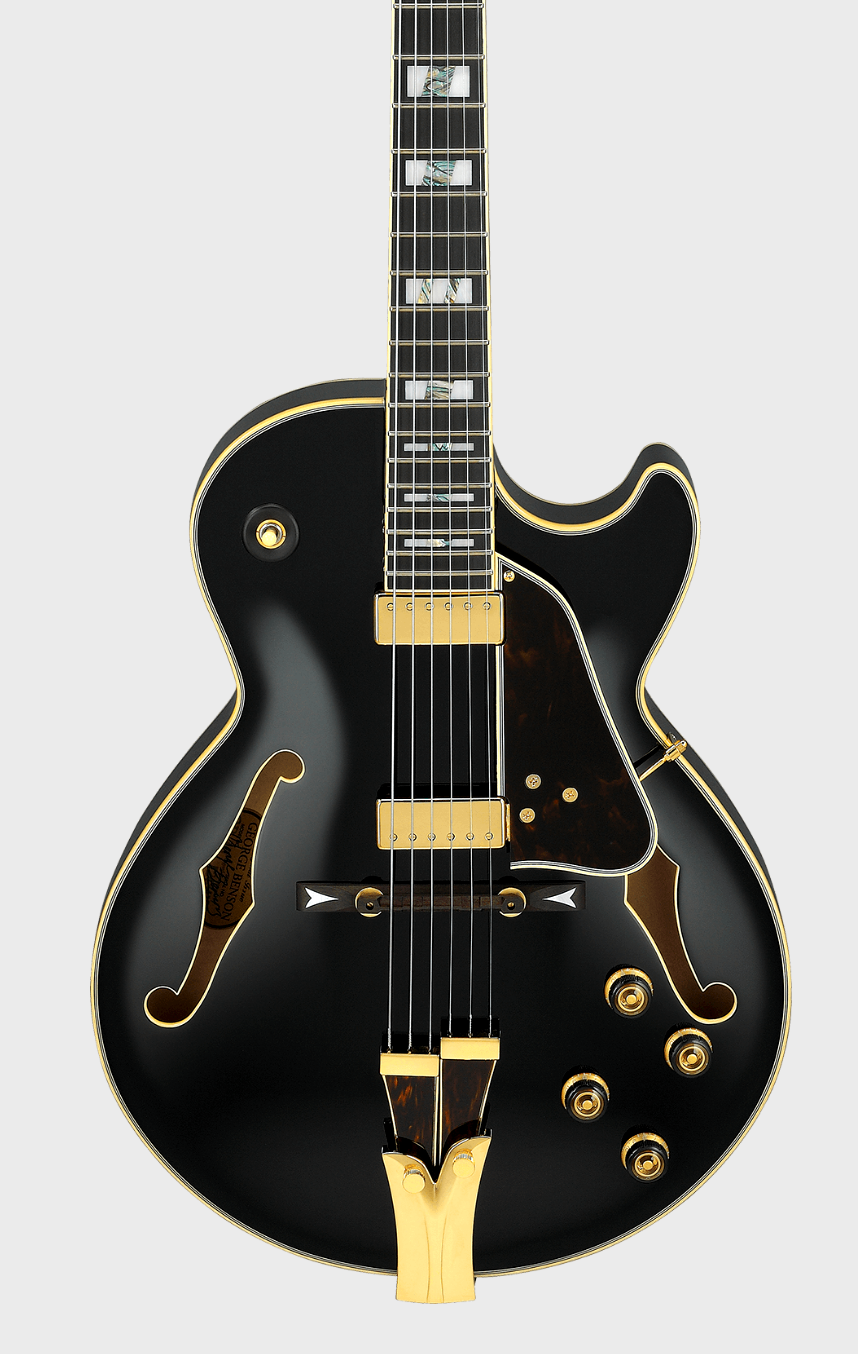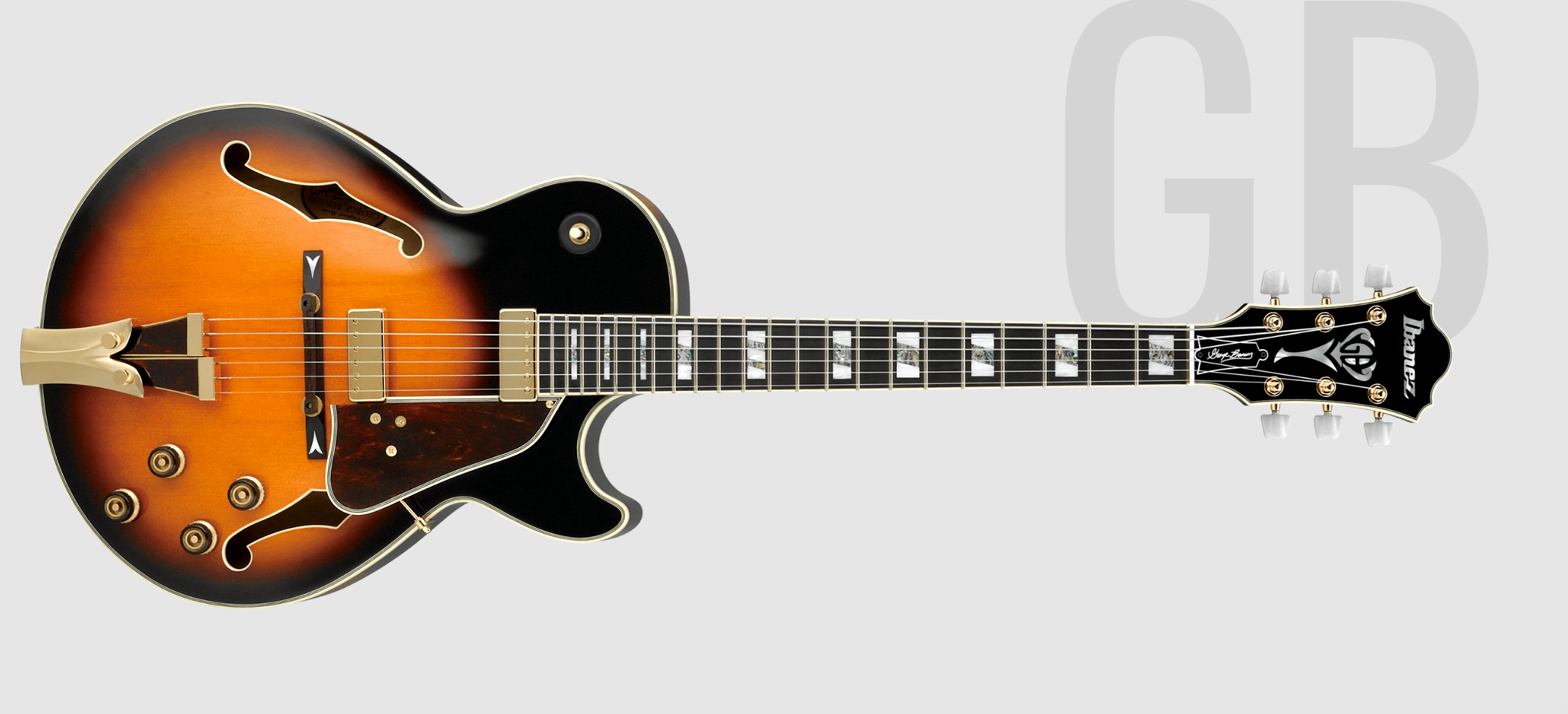 Body in acero sottile e scavato, singola spalla mancante, due buche a-effe praticate sul top in abete, manico in acero, tastiera in ebano e 22 tasti. E ancora: tailpiece splittato, regolabile, battipenna tartarugato mantenuto sollevato dal top, raffinatezze estetiche in bella evidenza... e due speciali humbucker GB, sollevati dal top, dotati ciascuno di Volume e Tono. E’ un trionfo: tra le mani di George Benson, immerso nei contesti più diversi (jazz, R&B, pop...), la GB10 canta letteralmente e in più è anche bella da vedere; già alla fine di quell’anno rappresenta un grande classico di Ibanez, destinato alla gloria eterna.